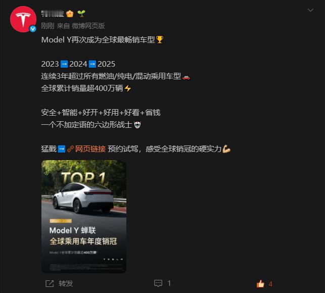 【ModelY连续三年全球销量第一围攻光明顶尚未成功,中国品牌仍需努力】2023➡️2024➡️2025连续3年超过所有燃油/纯电/混动乘用车型🚗发售7年以来,全球累计销量超400万辆⚡️