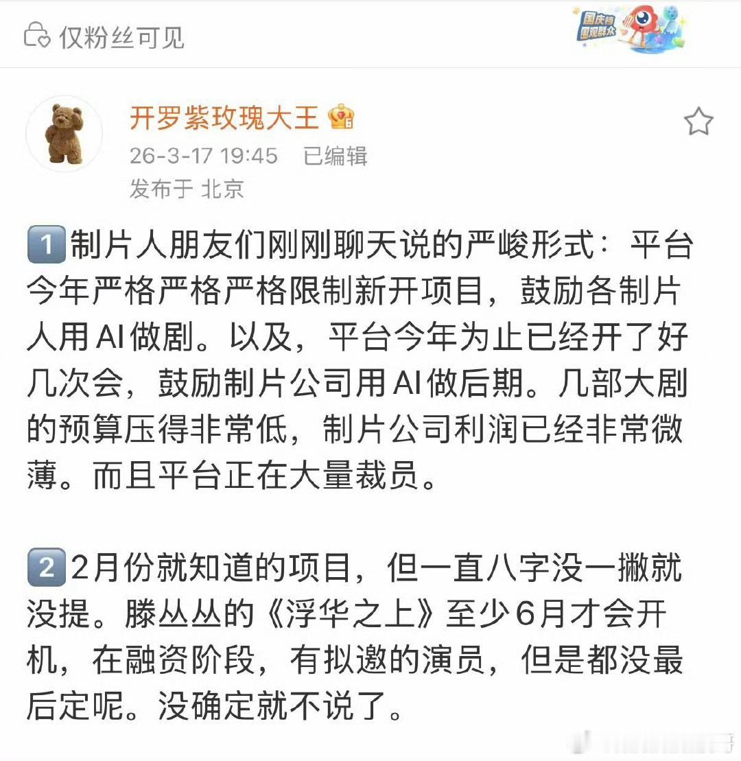 男二以下 AI演员如果说男二以下都用ai代替的话那么男主女主和ai演员对戏相当于对着空气表演喜怒哀乐真的不会笑吗?这样可能更加考验男女主演技吧 谁的演技能接受住ai的考验谁是演技派谁是zyk就能看出来了