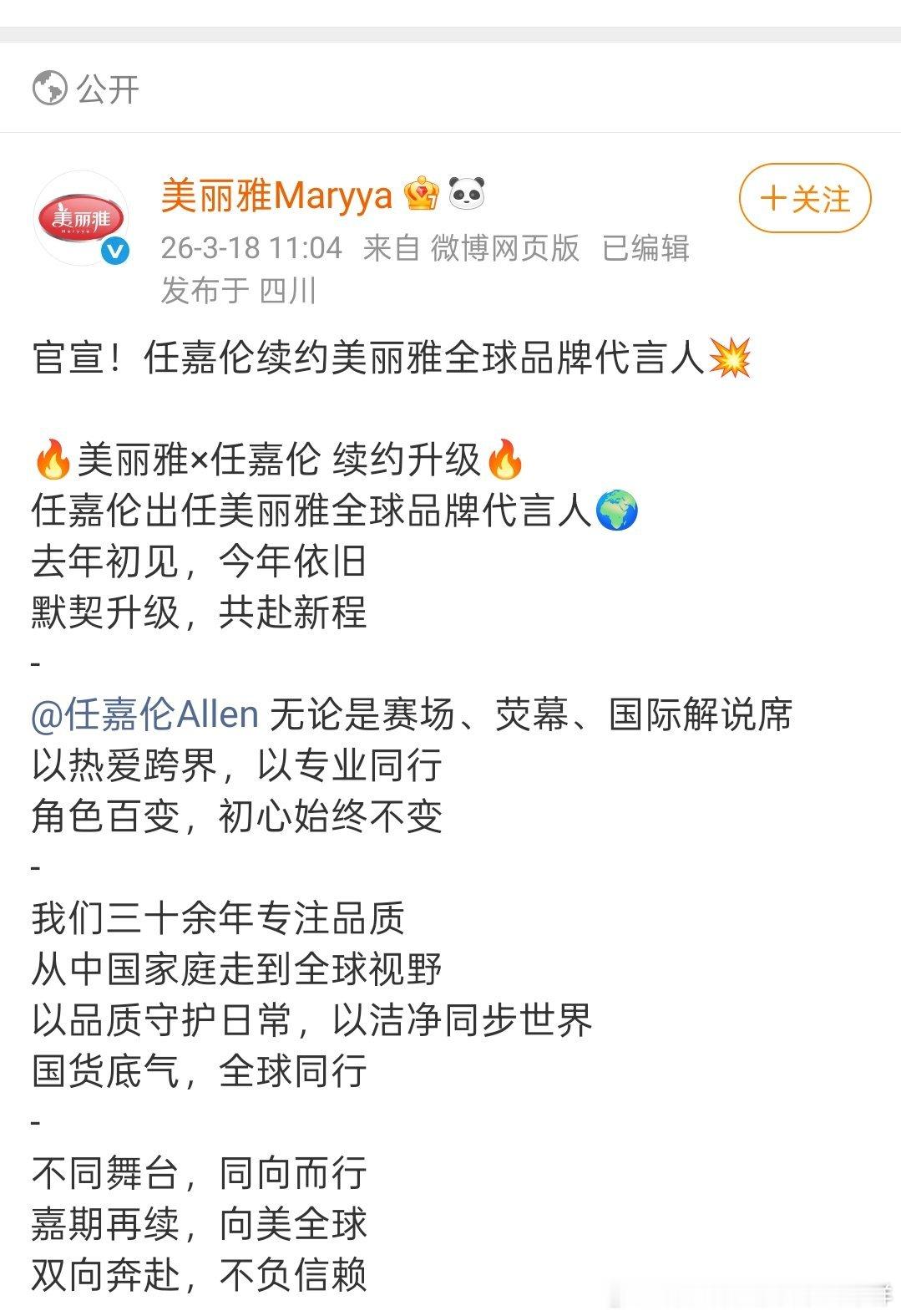 任嘉伦美丽雅官宣升全球代言人啦!恭喜🎉