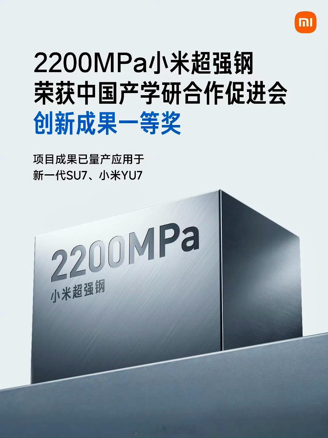 小米超强钢获得国家级科技一等奖小米汽车自研的2200MPa超强钢,拿到了国家级的