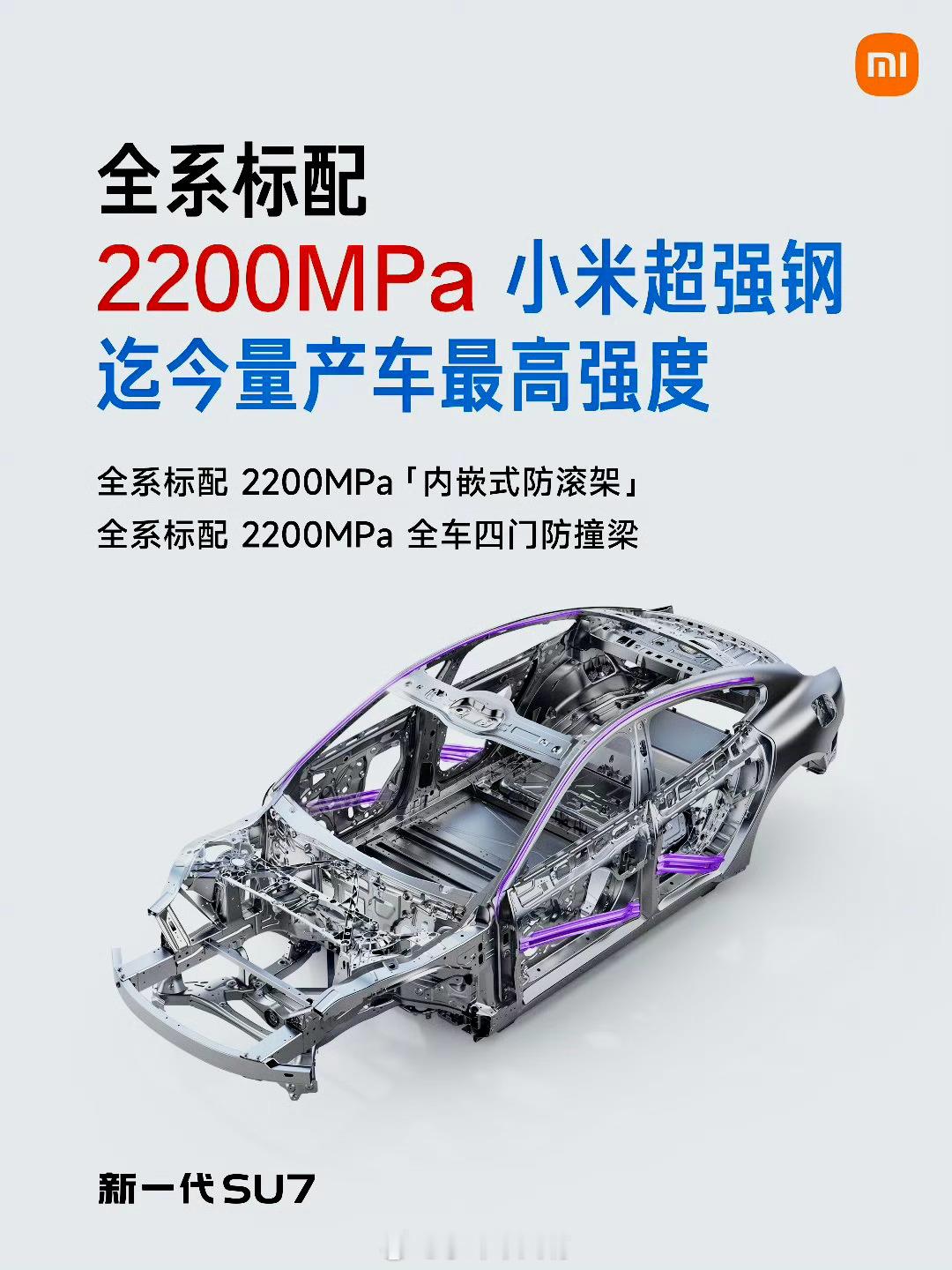 这种钢材强度很高,比市面上普通车用钢材更结实,目前已经用在新款小米SU7的防滚架和车门防撞梁上。