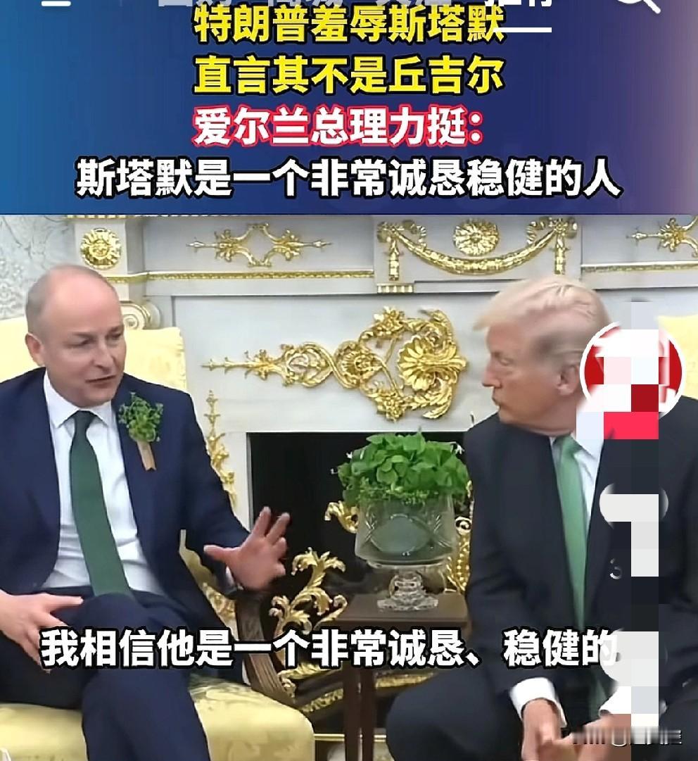 爱尔兰总理会做人! 他在白宫与特朗普会见时,针对特朗普当众羞辱英国首相斯塔默不是丘吉尔,(丘吉尔是英国二战时的领袖,特朗普意指斯塔默没有支持美国对伊朗发动的军事行动)不是像德国总理默茨那样敷衍一番,不吭声,他认为斯塔默是一个非常诚恳稳健的人,当面力挺斯塔默,人品绝对可赞。 爱尔兰总理马丁曾在一个多月前来中国进行过友好访问,对于中国抱有友善和期待的交往,人们还是比较认可他的为人。反衬特朗普到处辱骂世界上各个国家的领导人,其人品高下立见。