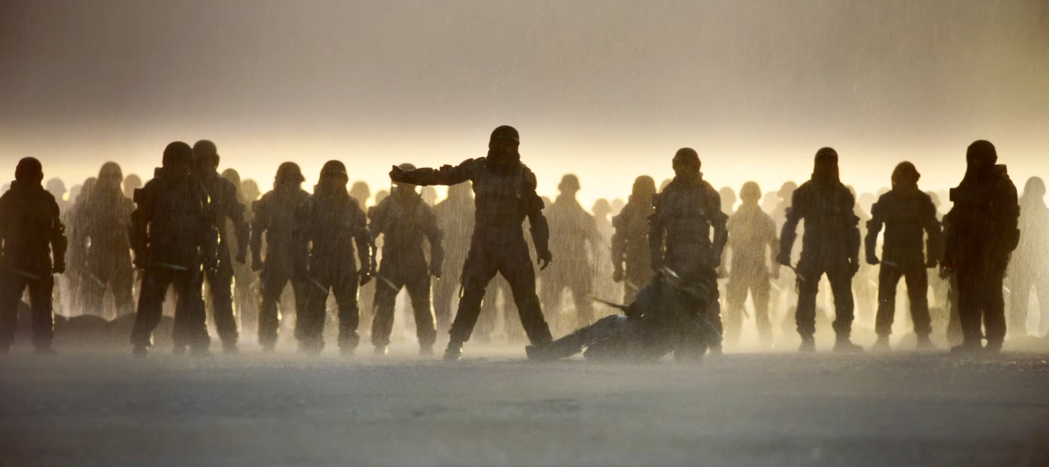 《沙丘3》去年11月12号杀青,时隔四个多月的时间发布第一支预告片。这支预告主要是让大家感受第三部跟前两部之间的联系,以及先声夺人地制造一些卖点,比如说甜茶的寸头造型,具体的情节线肯定是不会在这个时候放出来。直观感受是距离上一部的故事17年过去,弗雷曼人的处境并未因保罗·厄崔迪的崛起而有什么改善,反而环境更阴沉,场面更残忍,尸横遍野,所以才会有保罗自我怀疑,向母亲倾诉的那场戏。仍然能在战场上看到东方美学的元素,斗笠与战甲的结合有点日本忍者的感觉,但是后面被杀的这个小头目的束发冠着装就是比较明显的中国风了,很好奇这部里会不会又有中国演员的惊喜加盟。安雅·泰勒-乔伊饰演的尖刀阿丽亚镜头比较少,有点可惜,因为她也是《沙丘》后段叙事中的重要角色,期待她能有更多发挥吧。
