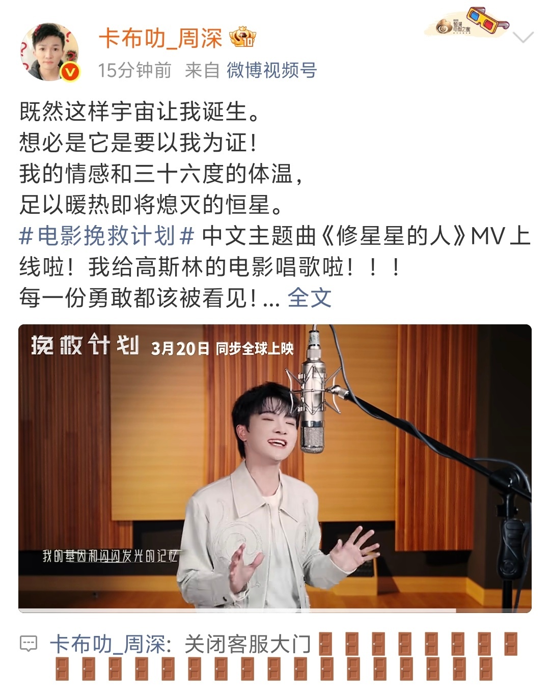 周深 📣 3.18 关闭客服大门📣