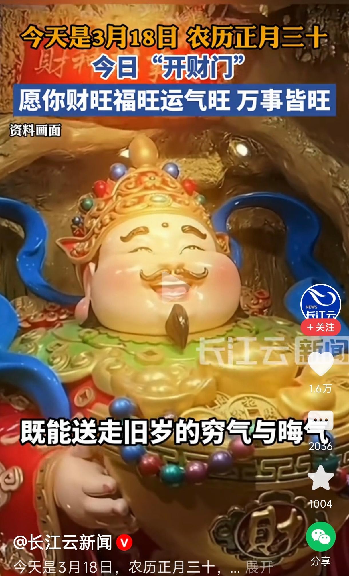 正月三十“开财门” 今天是农历正月三十,“开财门”的好日子,愿你