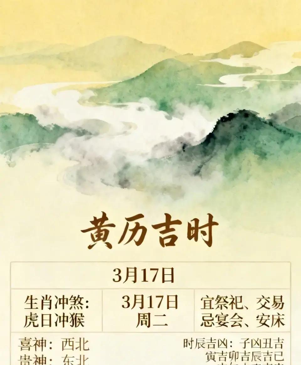 明天就是正月二十九了,也就是3月17号。还没过完正月,不少老一辈的人还在念叨那些老黄历。 早上邻居大妈特意嘱咐我,说明天虎日冲猴,属虎和属猴的朋友出门办事多留个心眼。老黄历上写的宜忌,看着挺玄乎,比如说明天宜祭祀交易,忌讳办酒席或者挪动床铺。 这些东西,说是迷信也好,是讲究也罢。现在的年轻人听了大多一笑置之,可真到了大事小情上,家里长辈总还是愿意图个心安,把喜神、贵神往哪放打听得清清楚楚。 说白了,日子还得咱们自己过,不管是看重这些传统讲究,还是觉得这纯属心理作用,至少在这一天多的一份敬畏,也是一种生活态度。 你们那里到现在还有这种看黄历行事的习惯吗?