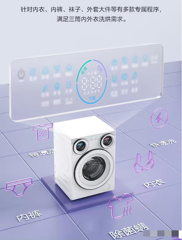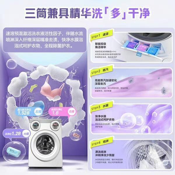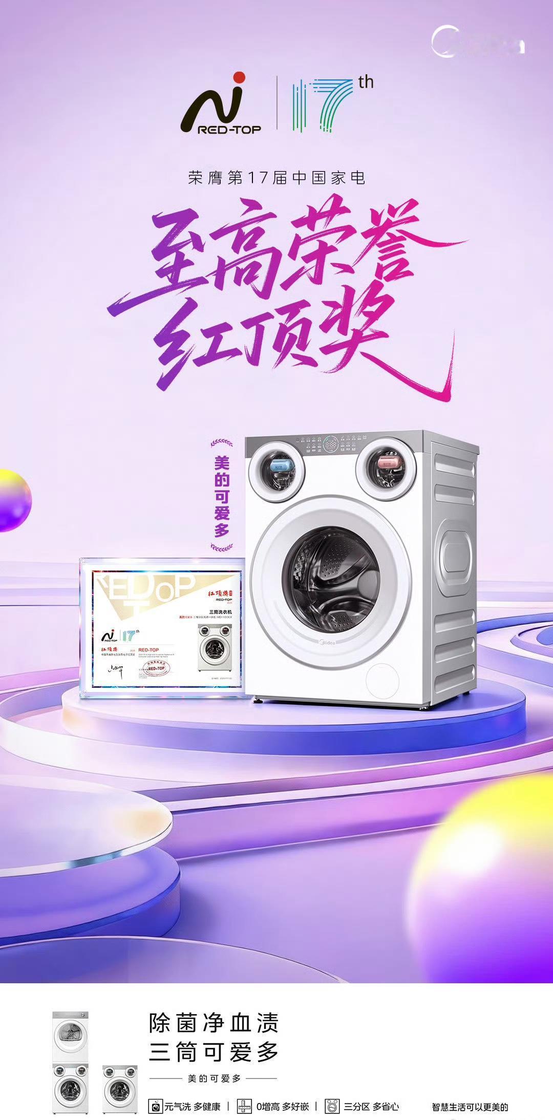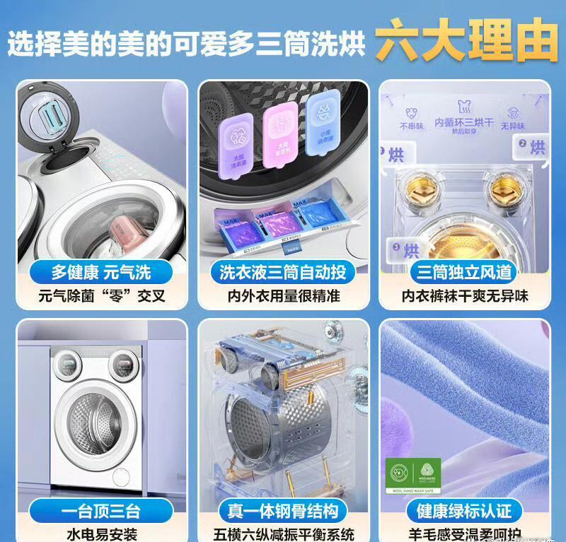 2025年中国品牌力指数(C-BPI),美的包揽9大家电品类品牌力第一: 电磁炉行业:美的,第1名(701.7分),连续14年位居行业第一 电烤箱行业:美的,第1名(694.3分),连续10年位居行业第一 净水器行业:美的,第1名(596.4分),连续10年位居行业第一 电饭煲行业:美的,第1名,2025年度行业品牌力榜首 微波炉行业:美的,第1名,2025年度行业品牌力榜首 空气净化器行业:美的,第1名,2025年度行业品牌力榜首 洗碗机行业:美的,第1名,2025年度行业品牌力榜首 吸尘器行业:美的,第1名,2025年度行业品牌力榜首 电热水器行业:美的,第1名,2025年度行业品牌力榜首 美的在家电行业的地位毋庸置疑! 最近被美的可爱多三筒洗烘一体机种草,特意做了功课,今天来唠唠真实体验和选购避坑点。 先看核心的洗涤效果,三筒分区设计确实戳中了卫生痛点,内衣、外衣、袜子能分开洗,从根源避免交叉感染,对有宝宝或敏感肌的家庭太友好了。小筒的元气棒功能也很实用,针对血渍、真菌有专门优化,正常负荷下洗得干净又除菌,不过要是塞太多衣物,清洁力还是会打折扣,得控制好量。 值得一提的是,烘干功能在梅雨季和回南天时堪称救星,三筒都能洗烘,洗完直接穿不用等晾晒。但要注意,烘干时间不算快,娇贵面料得选对应模式,不然容易损伤衣物。噪音方面,日常运行在可接受范围,高速脱水时会有点声响,安装时一定要找平地面,不然震动会明显些。 价格上补贴后3999元起,对追求健康洗护的家庭来说性价比不错。总的来说,它是解决混洗焦虑的好帮手,只要根据需求合理使用,确实能提升生活幸福感。