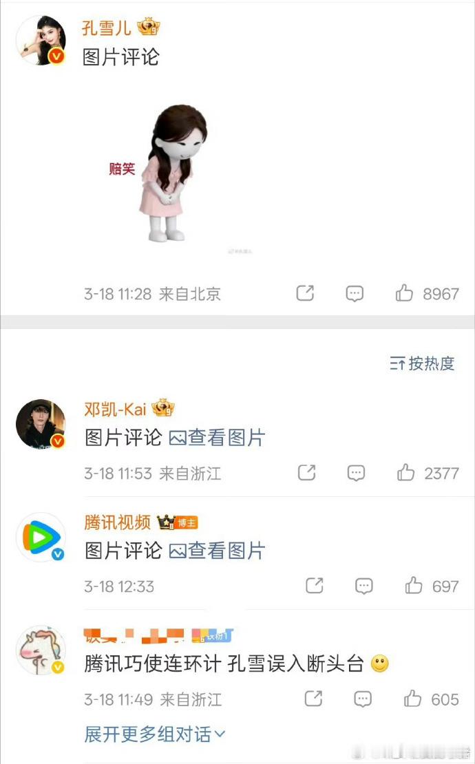 逐玉打响第一炮,孔雪儿粉丝排字,田赫征玉说配角cp不齐而俞掀桌,且邓凯只在孔雪儿评论下回复....田作之赫无妄之灾