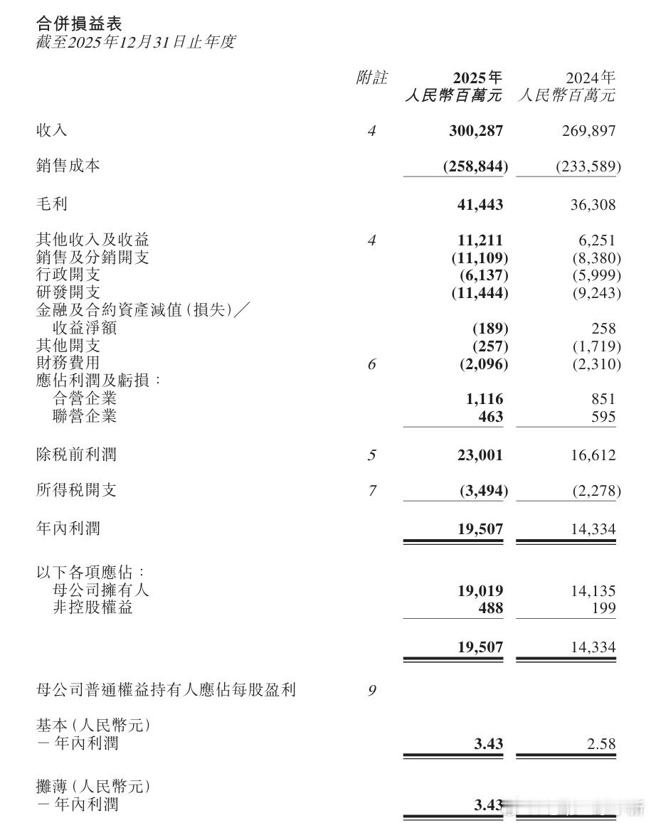 - 总营收 3002.9 亿元,同比增长 11.3%