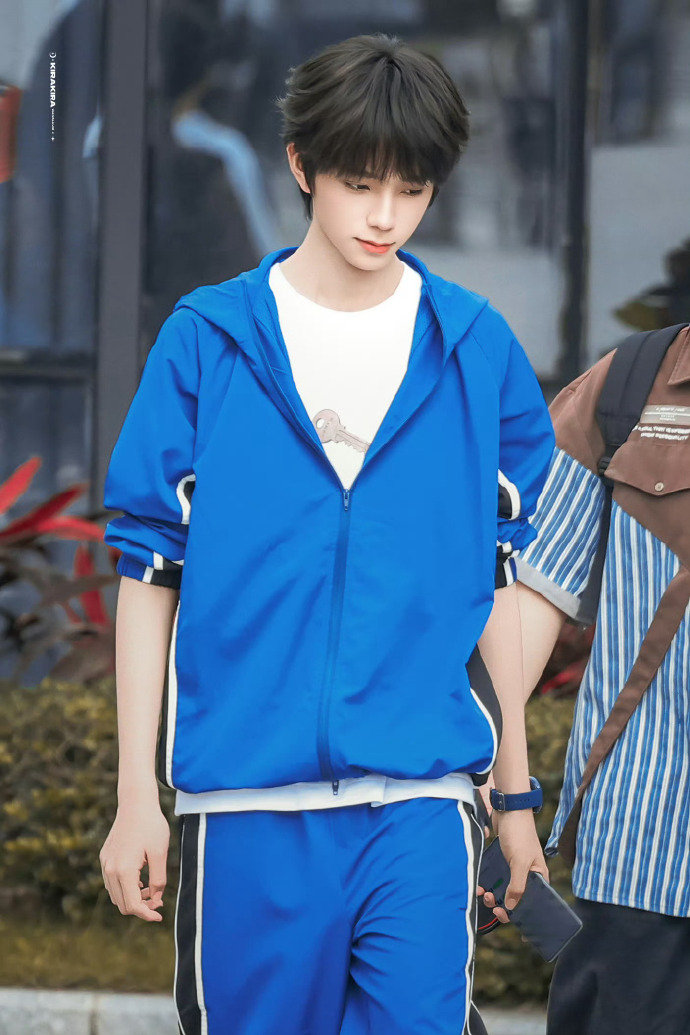 王橹杰蓝色运动装 王橹杰蓝色运动装,帅气付彬言学长上线,王橹杰这套完全运动风校草