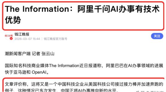 美国没想到,中国这次玩真的了!更没想到,美国媒体也支持中国! 谁也没料到,2026年的春节,中国科技圈没比红包、没比流量,反倒掀起了一场AI大混战,直接把海外媒体看懵了。 麻烦看官老爷们右上角点击一下“关注”,既方便您进行讨论和分享,又能给您带来不一样的参与感,感谢您的支持! 往年春节互联网大厂的主战场都是红包雨与短视频流量争夺,用户们忙着抢几块钱的红包、刷毫无营养的短视频,而2026年这场突如其来的AI混战,让所有围观者都看清中国科技企业已经跳出流量内卷,走向真正的技术落地与民生服务新阶段。 阿里千问在这场春节AI大战中成为最亮眼的主角,它没有纠结于大模型参数的虚高数字,而是依托淘宝、飞猪、盒马、支付宝等全生态矩阵,打造了从需求提出到服务完成的无缝闭环,让AI第一次真正走进全民日常消费与生活场景。 春节期间超1.3亿国内用户首次使用千问完成购物、出行、订餐等操作,累计发出超50亿次“千问帮我”的指令,这样庞大的民用普及规模,不仅刷新了国内AI应用的纪录,也让一直自诩领先的美国科技圈感受到了实实在在的冲击。 美国科技界此前长期带着偏见看待中国AI,认为中国企业只会模仿硅谷模式、缺乏原创技术与落地能力,他们始终把AI竞争的核心锁定在实验室参数、高端算力竞赛上,完全忽视了AI最核心的价值是服务于人。 让美国各界更意外的是,向来对中国科技严苛评判的美国主流媒体,这次却集体给出正面评价,CNBC、《华盛顿邮报》等媒体接连刊发报道,认可中国AI在民用普及与生态落地层面走出了区别于硅谷的独特道路。 《互联网科技时代》在专题报道中直言,中美AI竞争已经从拼参数转向拼获得感,中国AI正在用生态闭环解决普通人的真实需求,这一点远比硅谷追求资本增值与技术炫技的模式更具备长期价值。 OpenAI创始人奥尔特曼在接受CNN采访时也公开表示,中国AI的全栈式突破与民用转化速度超出预期,阿里千问的生态闭环模式,为全球AI商业化提供了全新的参考样本,这是来自行业顶级对手的认可。 千问的成功绝非偶然,它精准抓住了中国用户的核心需求,没有做华而不实的功能展示,而是把AI变成能帮用户挑商品、订车票、点外卖、查健康信息的实用助手,彻底打破了AI只属于极客与精英的刻板印象。 从老年群体用语音让AI帮忙购买生活用品,到年轻用户依靠AI规划春节出行与聚会安排,再到小微企业主借助AI生态完成线上经营与客户管理,中国AI的普及正在覆盖不同年龄、不同阶层的全体民众。 这种立足民生的创新路径,与美国AI行业聚焦企业服务、虚拟娱乐、精英圈层应用的方向形成鲜明对比,也让全球看清人工智能的发展并非只有硅谷一条路,适合本土需求的创新才最有生命力。 全球AI竞争格局正因中国的崛起而快速调整,过去由美国企业单方面制定规则、定义方向的时代已经结束,中国凭借庞大的市场基数、完善的数字生态与亲民的应用落地,正在成为新的规则参与者与制定者。 美国政府此前试图通过技术封锁遏制中国AI发展,没想到反而倒逼中国企业加快自主研发与生态整合,千问的全栈技术升级与生态闭环构建,正是中国科技摆脱外部依赖、走自主创新道路的典型成果。 越来越多的海外科技企业开始研究中国AI的民生化模式,欧洲、东南亚的科技公司纷纷效仿生态闭环思路,放弃单纯的参数竞赛,转向落地普通人生活的实用AI开发,全球AI创新呈现多元化发展态势。 这场2026春节AI混战,看似是国内企业的市场争夺,实则是中国科技实力向民用领域全面渗透的宣言,也用最直观的成果击碎了西方世界对中国AI的长期偏见与不实抹黑。 美国媒体的集体转向并非妥协,而是基于事实的理性认可,当中国AI不再追逐海外的脚步,而是扎根本土民生、服务亿万民众时,自然能在全球竞争中站稳脚跟,赢得行业与舆论的双重尊重。 未来的AI竞争早已不是实验室里的数字游戏,而是谁能更贴近用户、更解决痛点、更普惠大众的长期较量,中国科技企业已经找准了属于自己的赛道,并且用行动证明这场竞赛我们不仅参与,更能引领。 信息来源 1. 2026赛博引力·AI购物消费洞察报告(每日经济新闻,2026年3月13日) 2. 全球@中国两会丨外媒:中国人工智能正成为推动增长与竞争力的新引擎(今日头条,2026年3月13日) 3. 外媒热议中美AI路径分野:一个精英获益,一个普通人得利(观察者网,2026年2月4日) 4. 技术为骨、生态为翼:千问“春节战役”引发的AI生活变革(搜狐网,2026年2月24日) 5. 新华网民生观察丨“AI+消费”加速走向日常生活(新华社,2026年3月18日) 要不要我帮你生成适配公众号、头条号的**封面文案与话题标签**?