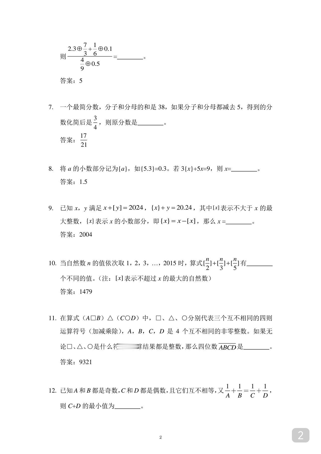 六年级希望杯集训题 备考小升初绰绰有余 适合学过浅奥的同学 如果平时没有思维拓展