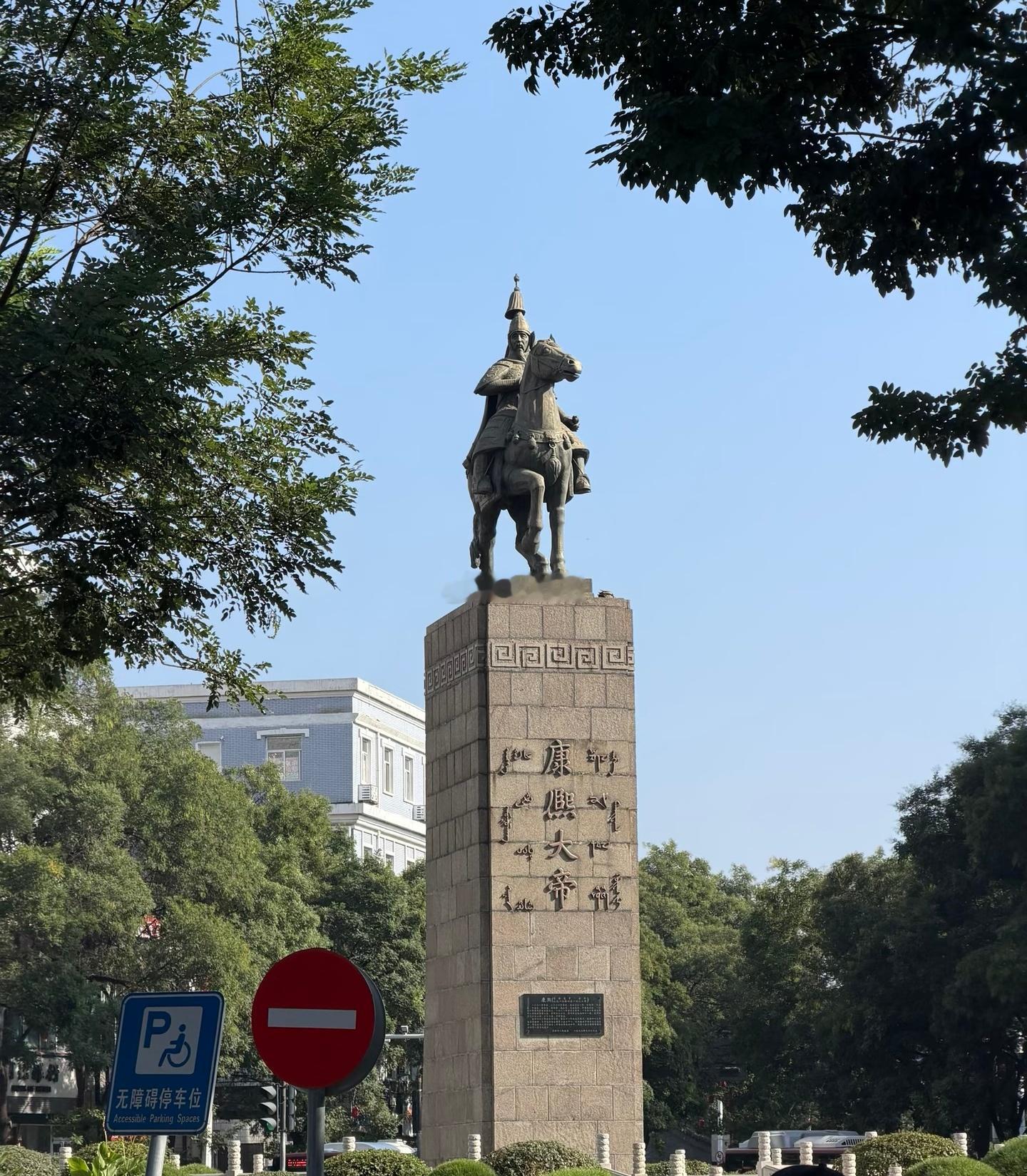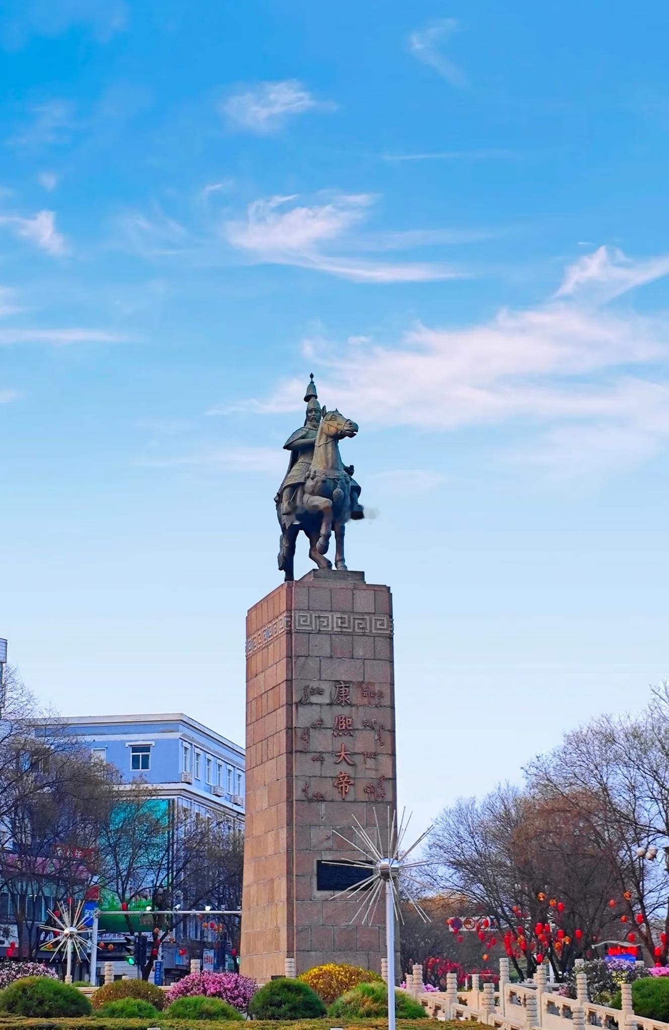 承德市是国内唯一一个市中心立“清帝像”的城市。造像为一身旗军戎装的康熙。在承德,