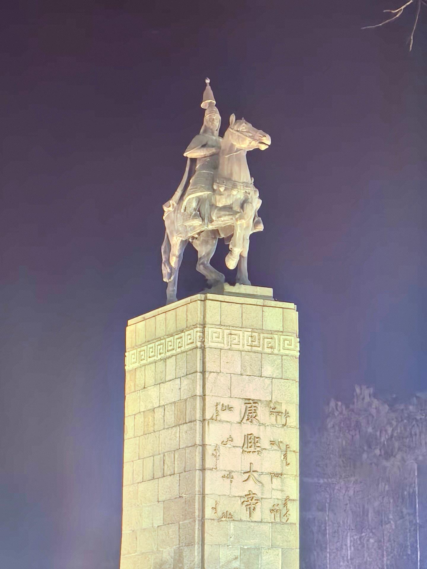 承德市是国内唯一一个市中心立“清帝像”的城市。造像为一身旗军戎装的康熙。在承德,还有“鼎盛王朝-康熙大帝”的实景表演。