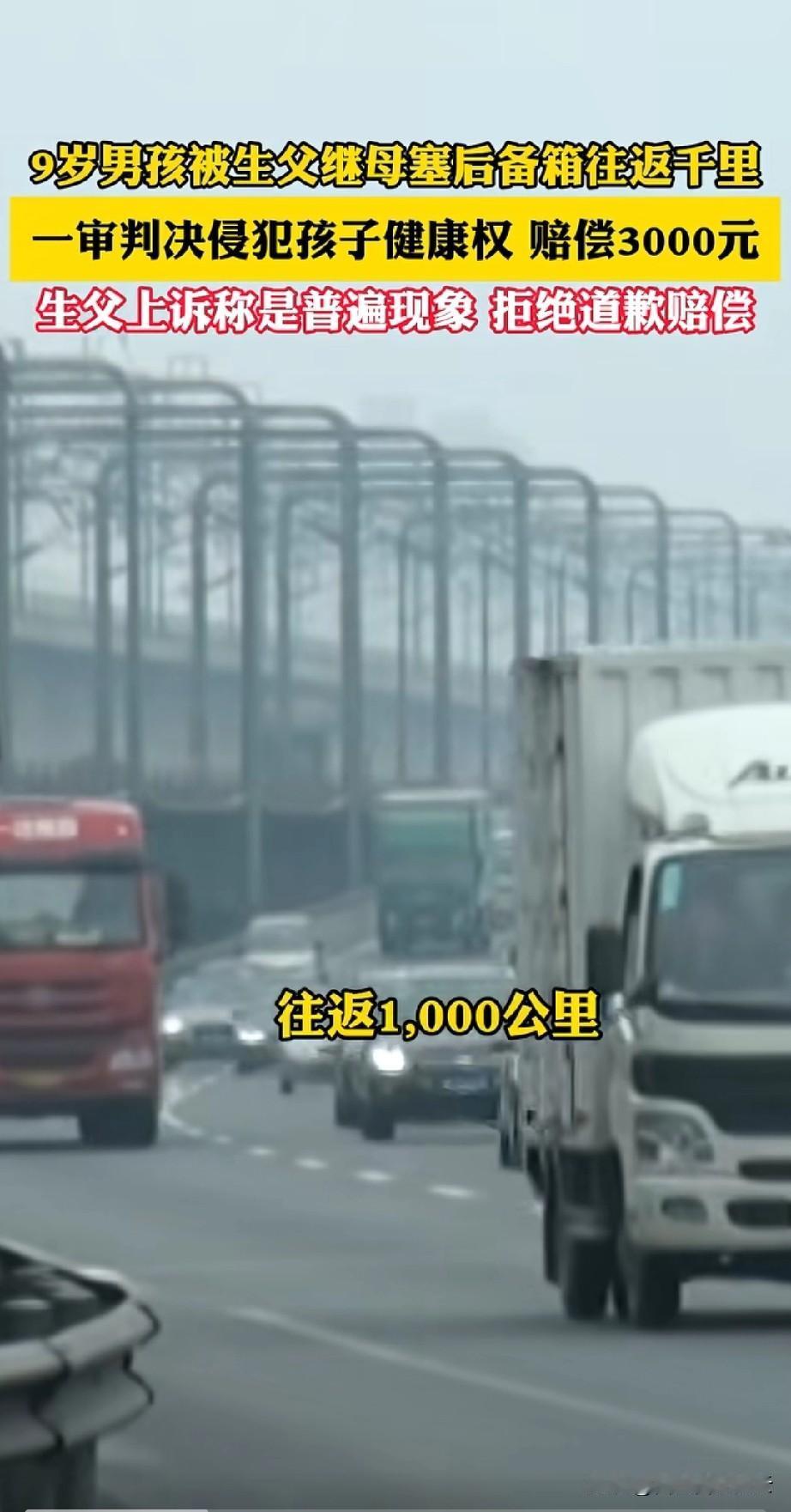 我真是气笑了,这个父亲怎么好意思上诉的? 大家还记得那个被父亲推进后备箱,蜷缩在后备箱坐了1000公里的男孩吗?最新的消息是,男孩的生母已经拿到儿子的抚养权,她又替男孩起诉了前夫和继母。 一审法院判了,男孩父亲这边的行为侵犯了他的健康权,需要向男孩道歉,并赔偿3000块钱。 虽然法院判了,但是男孩父亲却很不服,他认为让儿子坐后备箱这种事很正常,很多家庭都会这样做。所以他拒绝赔偿,也拒绝道歉,还又上诉了。 反正我是不能理解,为什么让比他儿子还大的继子坐车里,只让他儿子一个人坐后备箱,后备箱里还有婴儿车。哪怕你说轮流坐一下也行,为什么让男孩一个人坐1000公里? 对于这件事,你怎么看呢?
