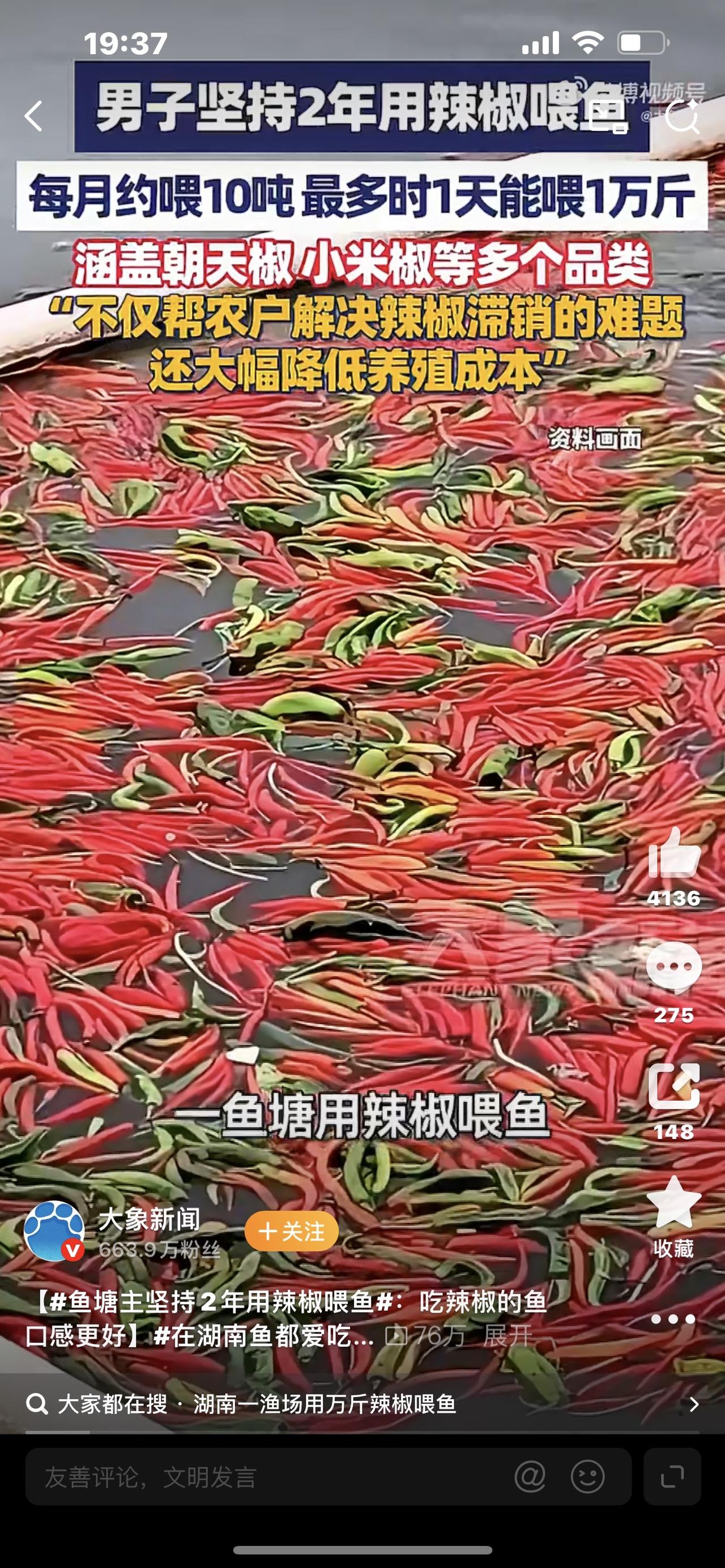 鱼塘主坚持两年用辣椒喂鱼!网友看懵:鱼不怕辣吗?真相太惊艳! 你敢信吗?广西一位鱼塘主,竟然天天给鱼喂辣椒!一喂就是整整两年,附近村民都说他疯了:鱼吃了不会死吗?结果鱼捞上来那一刻,所有人都看呆了! 一开始,大家都觉得这人纯属胡闹。 鱼怎么可能吃辣椒?又辣又刺激,喂多了肯定翻塘。有人嘲笑,有人等着看笑话,就连家人都劝他别瞎折腾。 可这位塘主不为所动,每天坚持把新鲜辣椒打碎拌进饲料,按时投喂。很多人不理解:好好喂饲料不行吗,非要搞这些歪门邪道? 直到鱼上市,真相才彻底曝光—— 这些吃辣椒长大的鱼,肉质特别紧实、没有土腥味、鲜香味浓,下锅久煮不烂,比普通鱼好吃太多! 原来辣椒能杀菌驱虫、增强鱼的抵抗力,鱼塘少生病,鱼长得更健康,完全不用乱用药。 别人靠饲料催肥,他靠辣椒养品质; 别人追求产量,他死磕口感。 两年不被理解,两年默默坚持,最后用结果征服了市场。 很多时候,不被看好的坚持,往往藏着最大的惊喜。 别人笑你太疯癫,你笑他人看不穿。 真正做事的人,从不在乎流言蜚语,只专注把一件事做到极致。 这哪是喂鱼,这是用心、是匠心、是不随波逐流的底气! 好东西,从来都经得起时间和口碑的检验。吃辣椒的鱼 辣椒吃多危害 辣椒养鱼