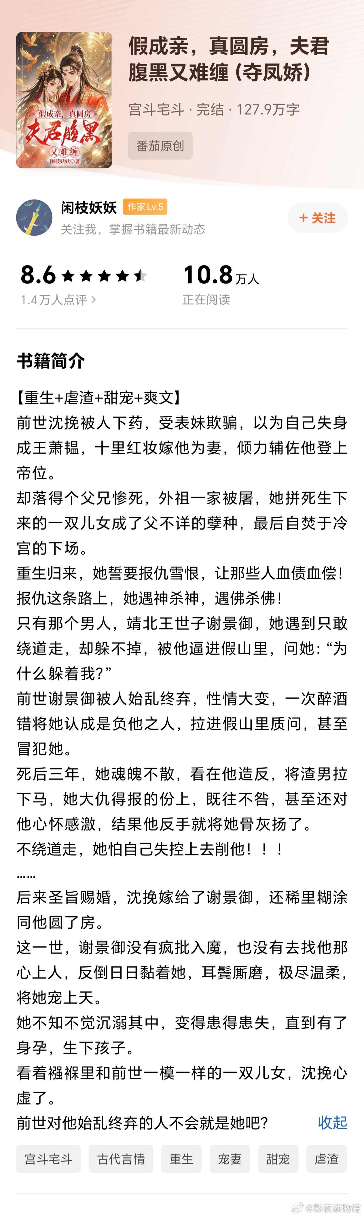 推文 《假成亲,真圆房,夫君腹黑又难缠(夺凤娇)》作者:闲枝妖妖腹黑世子与貌美聪慧贵女,重生虐渣爽文