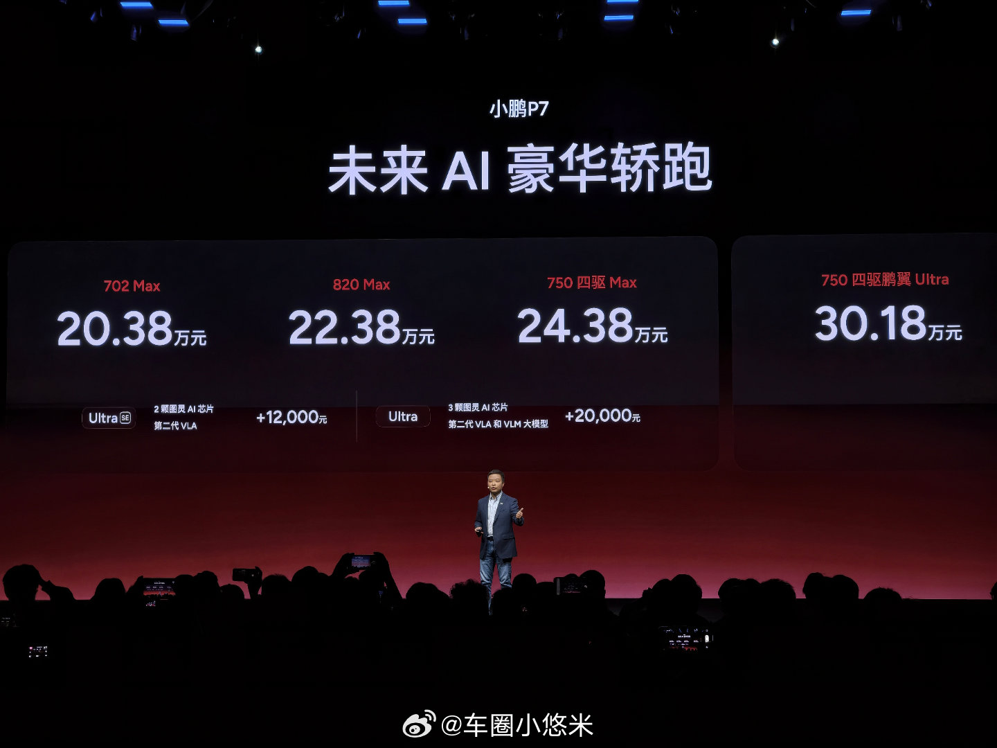 未来AI豪华轿跑--小鹏P7重磅上市!🚗 官方指导价:·702 Max版 20.38万元·820 Max版 22.38万元·750 四驱 Max版24.38万元·750 四驱鹏翼 Ultra版 30.18万元在Max版基础上,加1.2万元即可升级为搭载2颗图灵AI芯片+第二代VLA的Ultra SE、加2万元可升级为搭载3颗图灵AI芯片+第二代VLA和VLM大模型的Ultra。