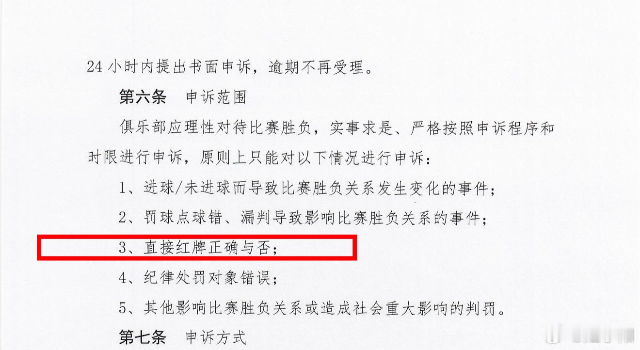 查阅了关于申诉的相关文件(图二),和今年夏天才会改变的视频裁判介入规则一样,根据目前的申诉规定,原则上只有进球认定、点球判罚、直接红牌和纪律处罚对象错误等 5 种情况才可以在赛后提出申诉。两黄一红原则上不属于可以申诉的范围,