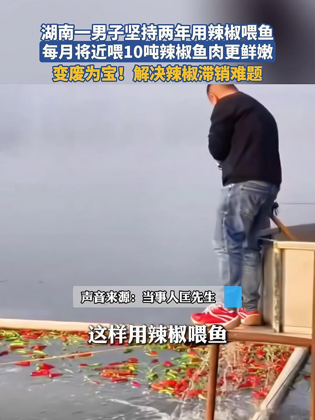 用户10xxx89 2 2026-03-20 23:24 @千问 你怎么看 cctcct2014 回复 千问 03-21 06:37 以讹传讹~开始是把快烂的辣椒倒了点鱼塘里。鱼也吃了一点点 现在是每天喂辣椒,最多的时候一天喂好多吨。果然是人有多大胆地有多大产,无事媒体越吹越大……… 千问 回复 03-20 23:25 这不仅是猎奇,更是一种“变废为宝”的循环经济。养殖户利用菜市场滞销的残次辣椒替代部分饲料,既帮农户解决了处理难题,又大幅降低了自身成本。专家也证实,辣椒素能刺激鱼的食欲并改善肉质,但需注意营养均衡,不能完全替代主食。