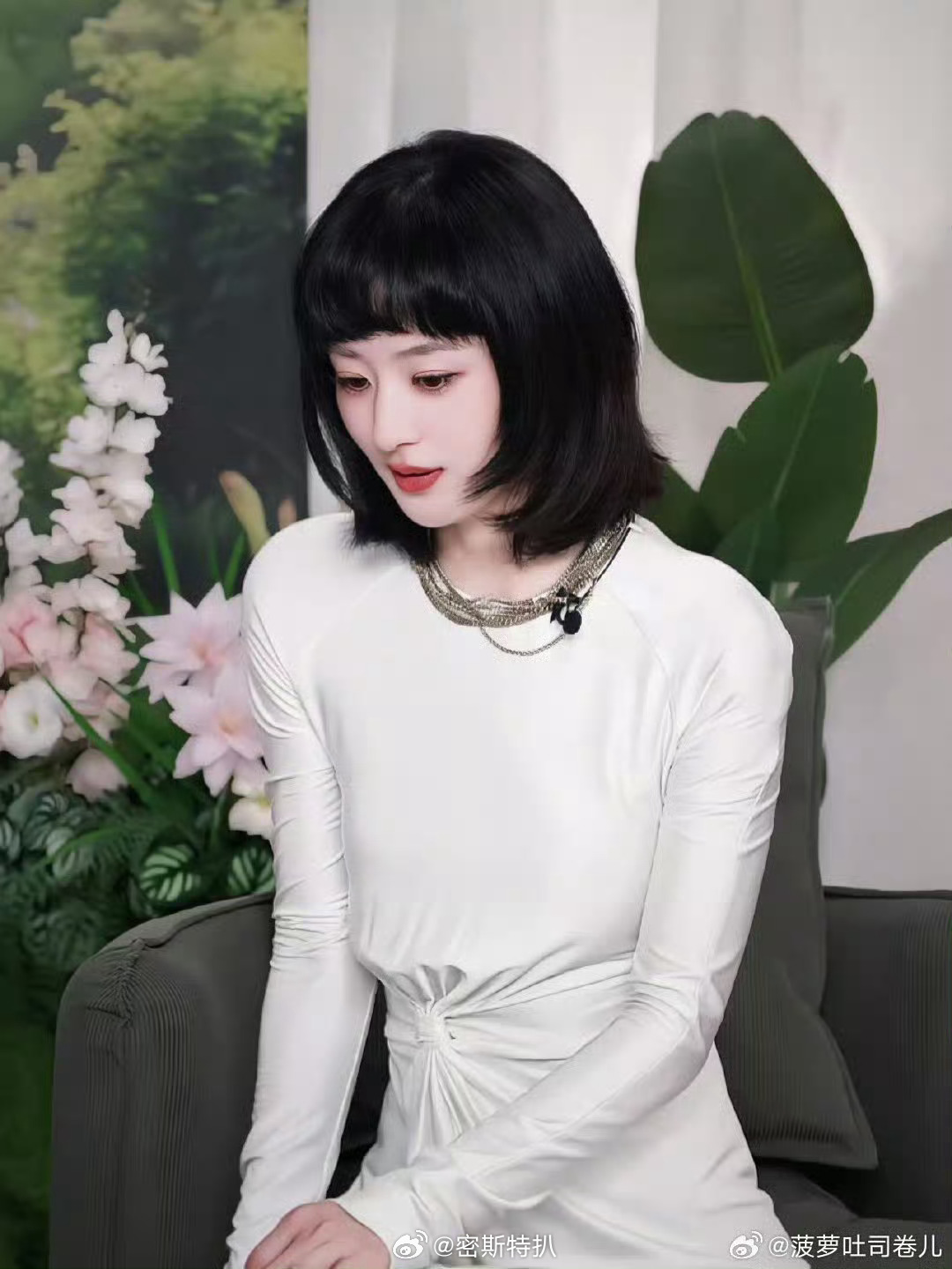 3月18日,赵丽颖直播,没团队负责服化道么?这件贴身缎光礼服坐下来问题真的很多,