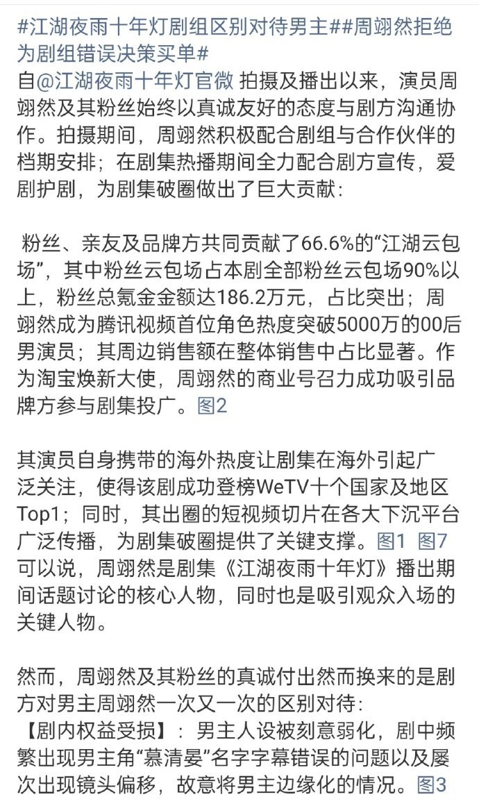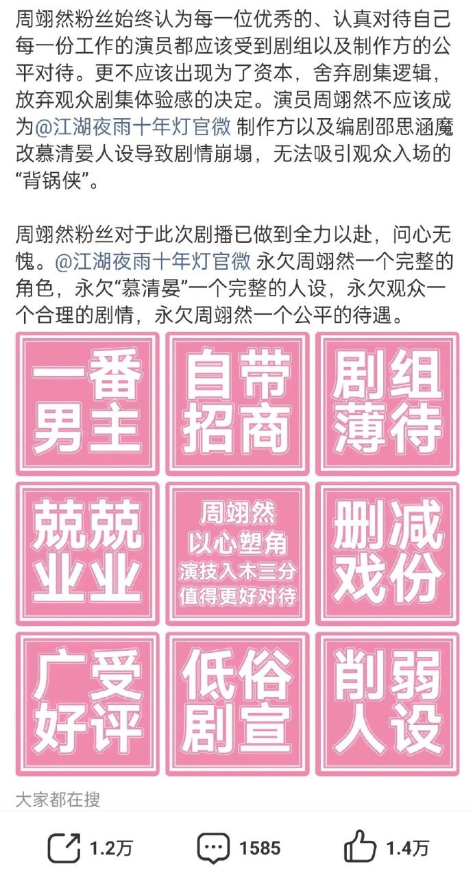 周翊然 粉丝向《江湖夜雨十年灯》剧组维权,已经1.2万转了。