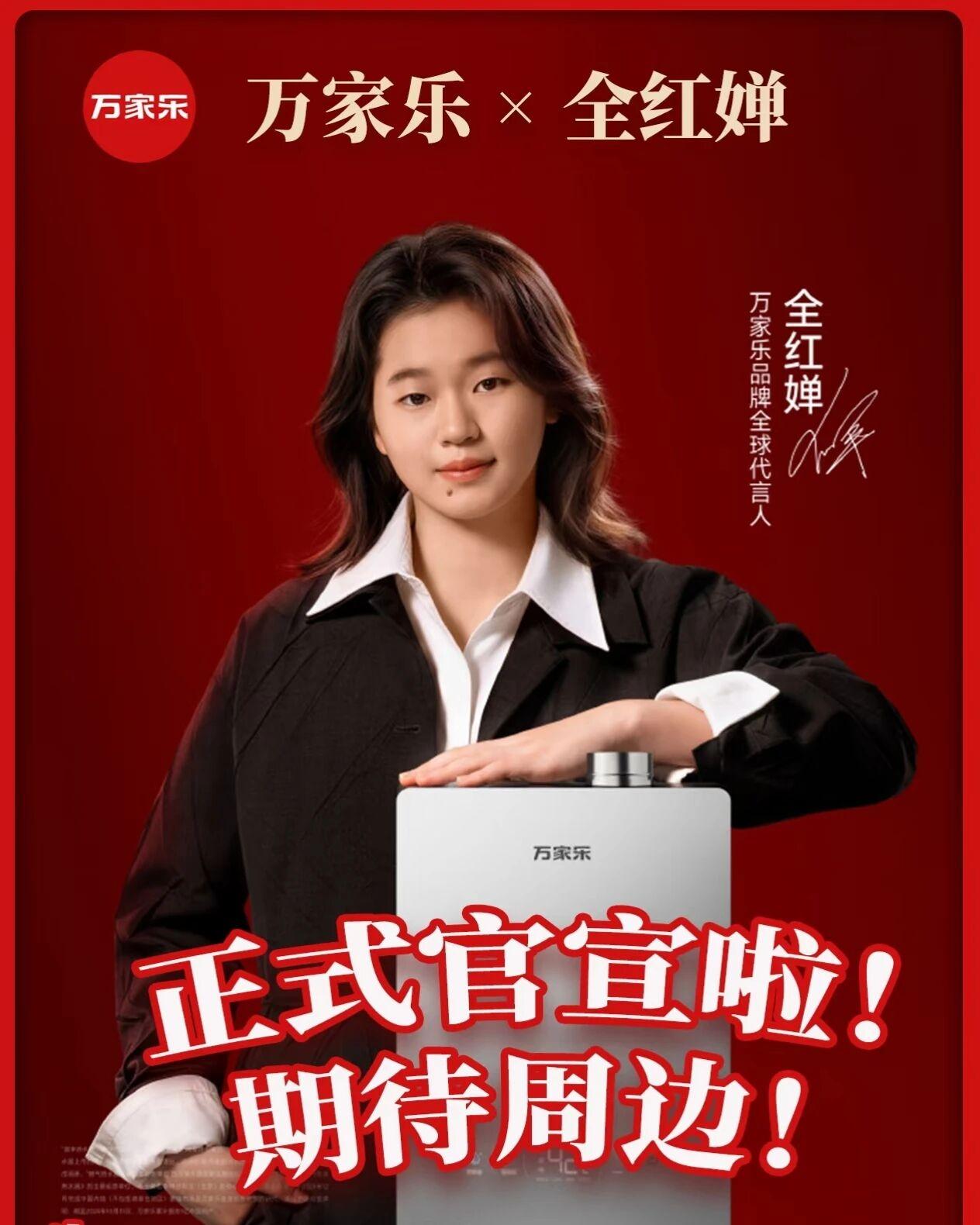 官宣!全红婵首个个人代言落地,冠军实力与国民品牌双向奔赴 近日,奥运冠军全红婵正式官宣成为万家乐品牌全球代言人,这是她职业生涯首个独立个人代言,瞬间引发全网热议,堪称体育顶流与国民品牌的完美契合。 作为跳水界现象级选手,全红婵年纪轻轻便斩获奥运三金、实现世界大赛全满贯,凭借教科书级别的水花消失术征服世界,沉稳自律、低调纯粹的形象深入人心。万家乐深耕厨卫行业多年,专注超净科技与品质家电,更是国家跳水队长期合作伙伴,双方合作根基深厚、高度契合。 品牌以“全红婵,超净”为核心口号,精准将她赛场上极致干净、稳定专业的特质,与品牌健康洁净的产品理念完美融合,在上海AWE行业展会上正式亮相,收获超高人气与关注度。 此次合作并非盲目流量选择,而是实力与口碑的互相成就。全红婵靠日复一日苦练登顶巅峰,不骄不躁、坚守本心;万家乐坚守品质、深耕技术,专注守护千家万户,二者精神高度统一。 这一合作既提升了国民品牌影响力,也印证了全红婵的顶级商业价值与正面形象。不靠炒作、不凭热度,真正的优质偶像,永远靠实力赢得市场与尊重。