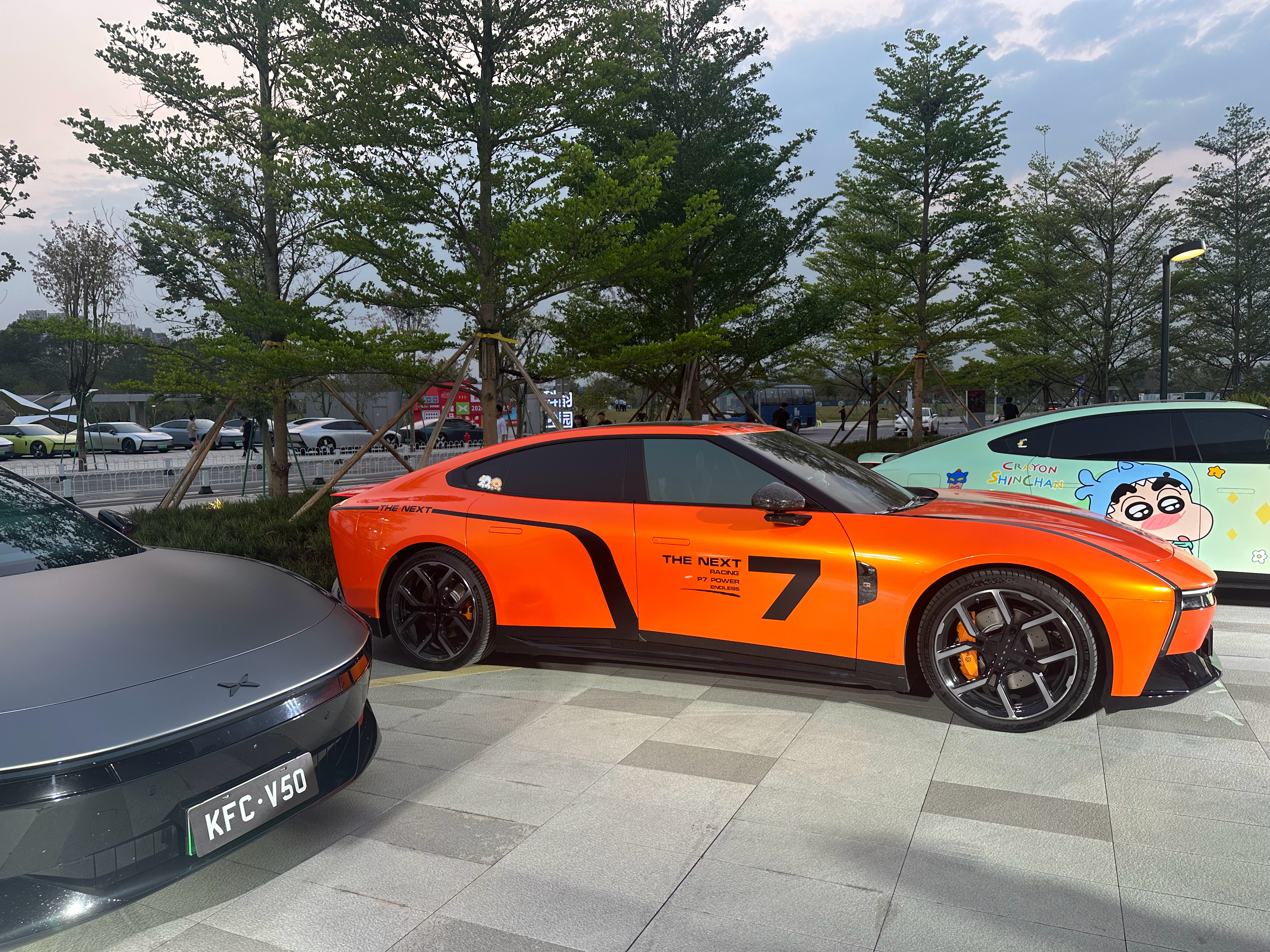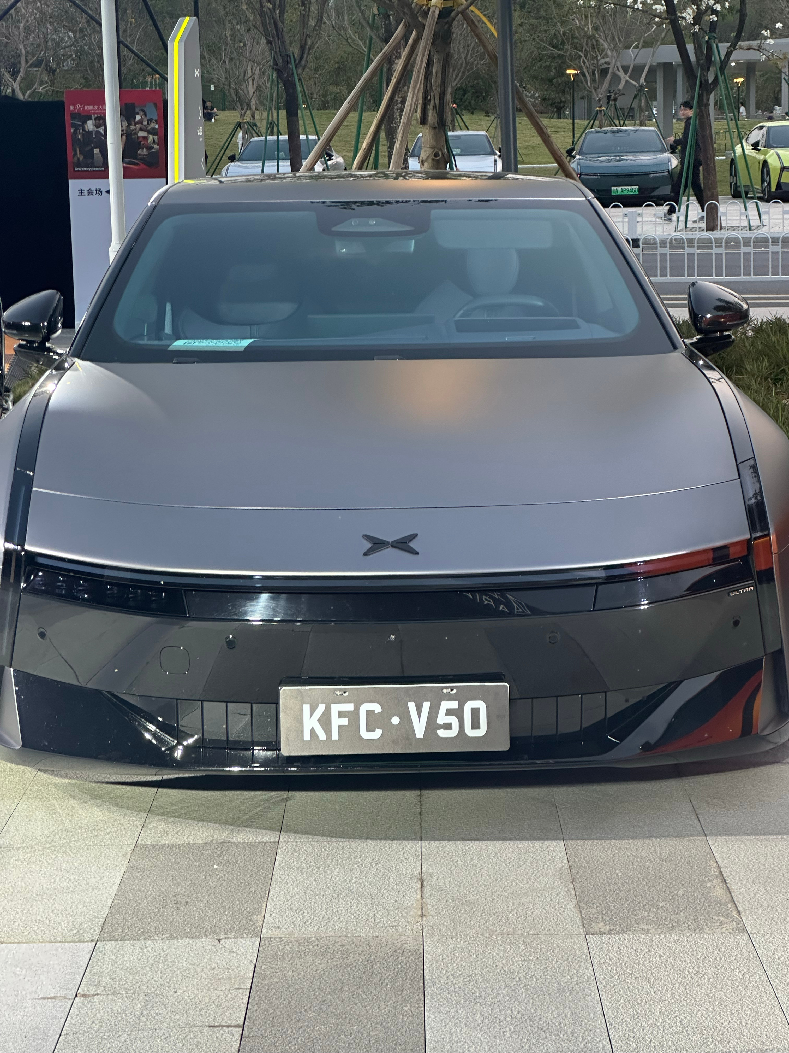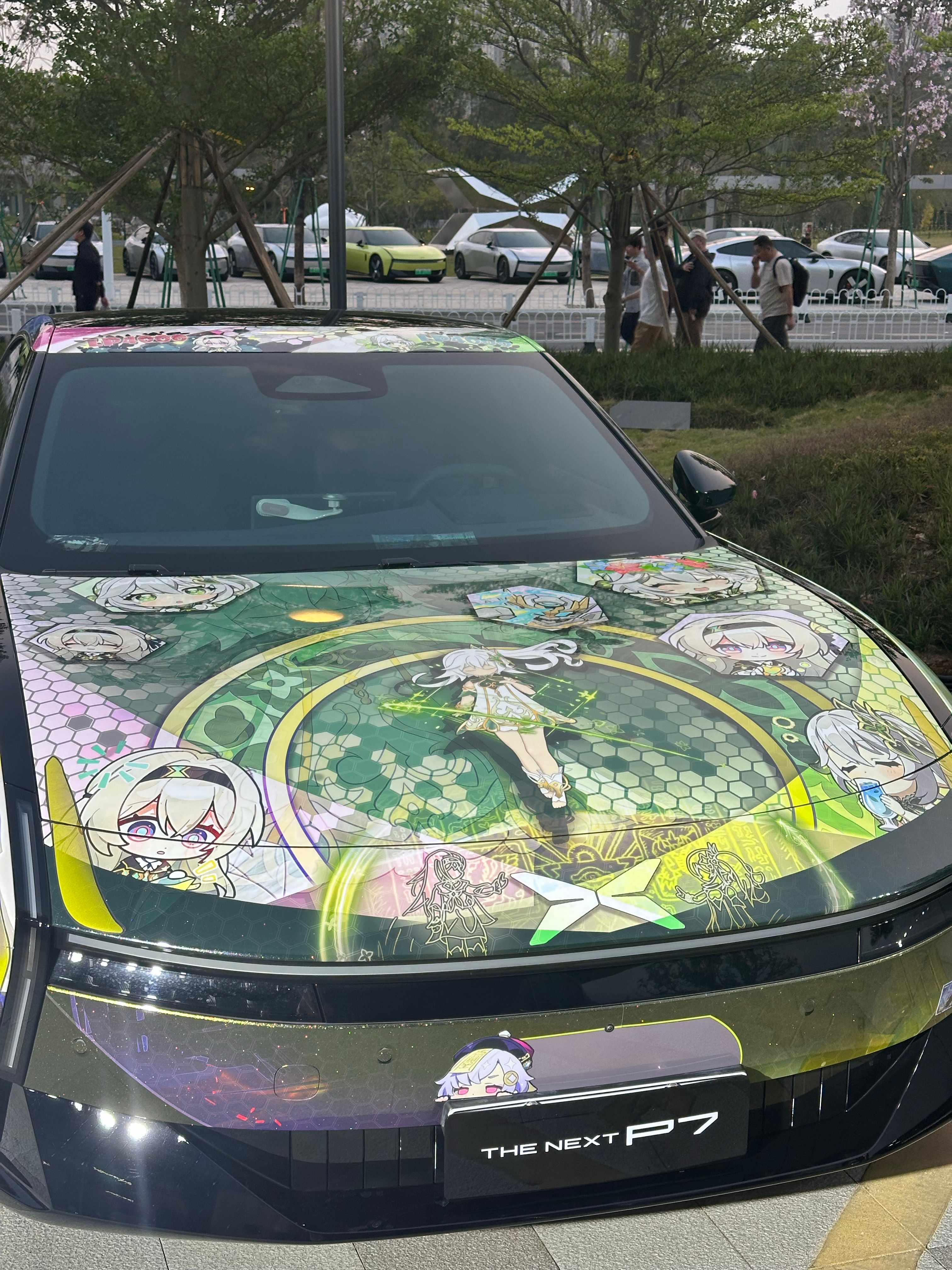 其实活动外场就要素很多,停了一辆官方设计的原神痛车,但是为什么选的是小草神?还有 v 我50梗,看得出来潮流这块真的拿捏得死死的