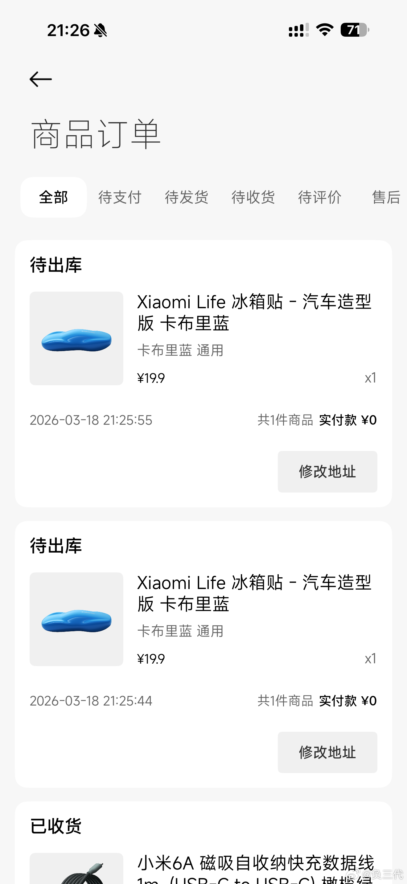 小米汽车两周年,我买过SU7 Max创始版和SU7 Ultra,所以领了两个冰箱