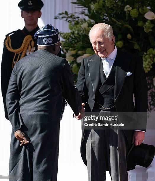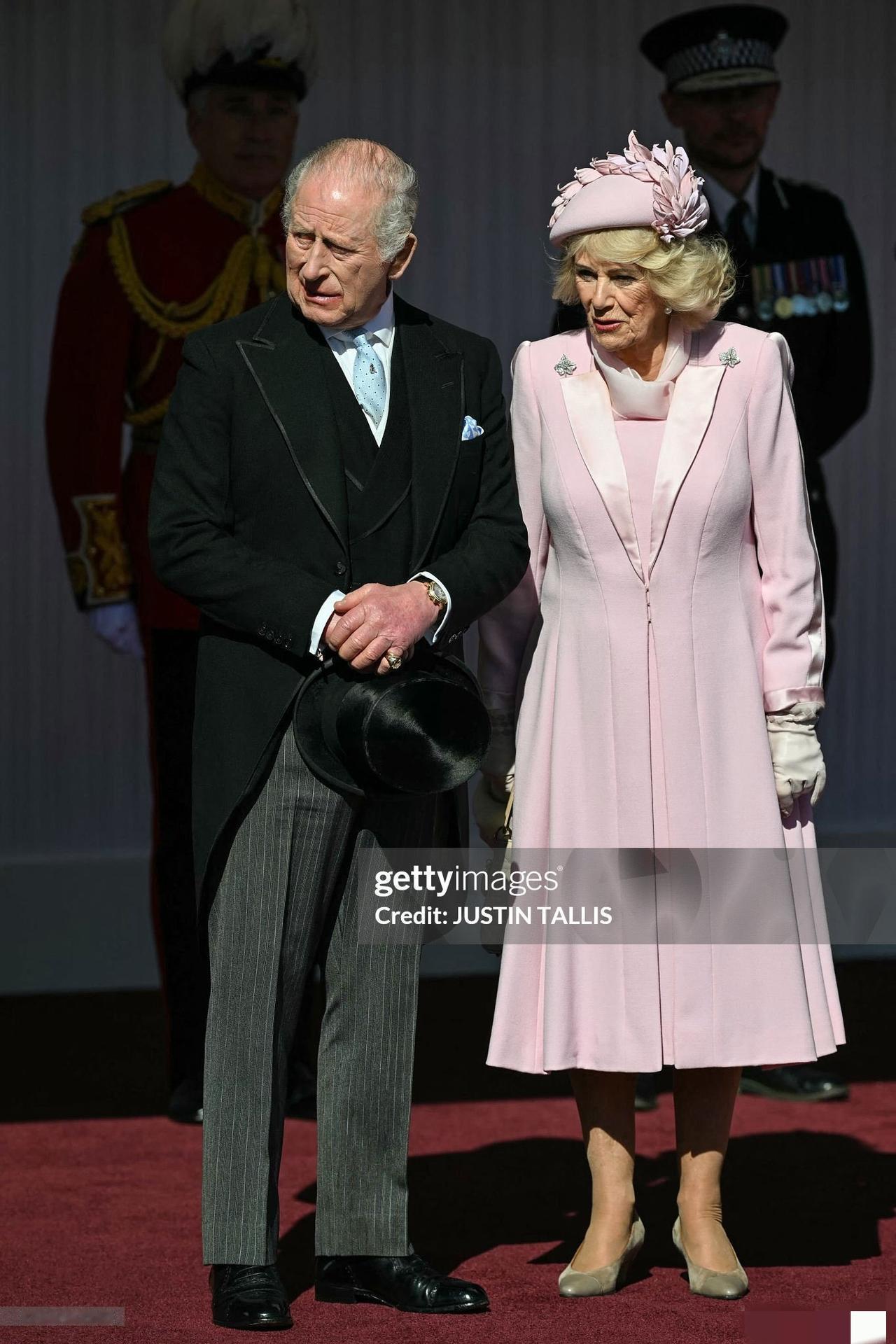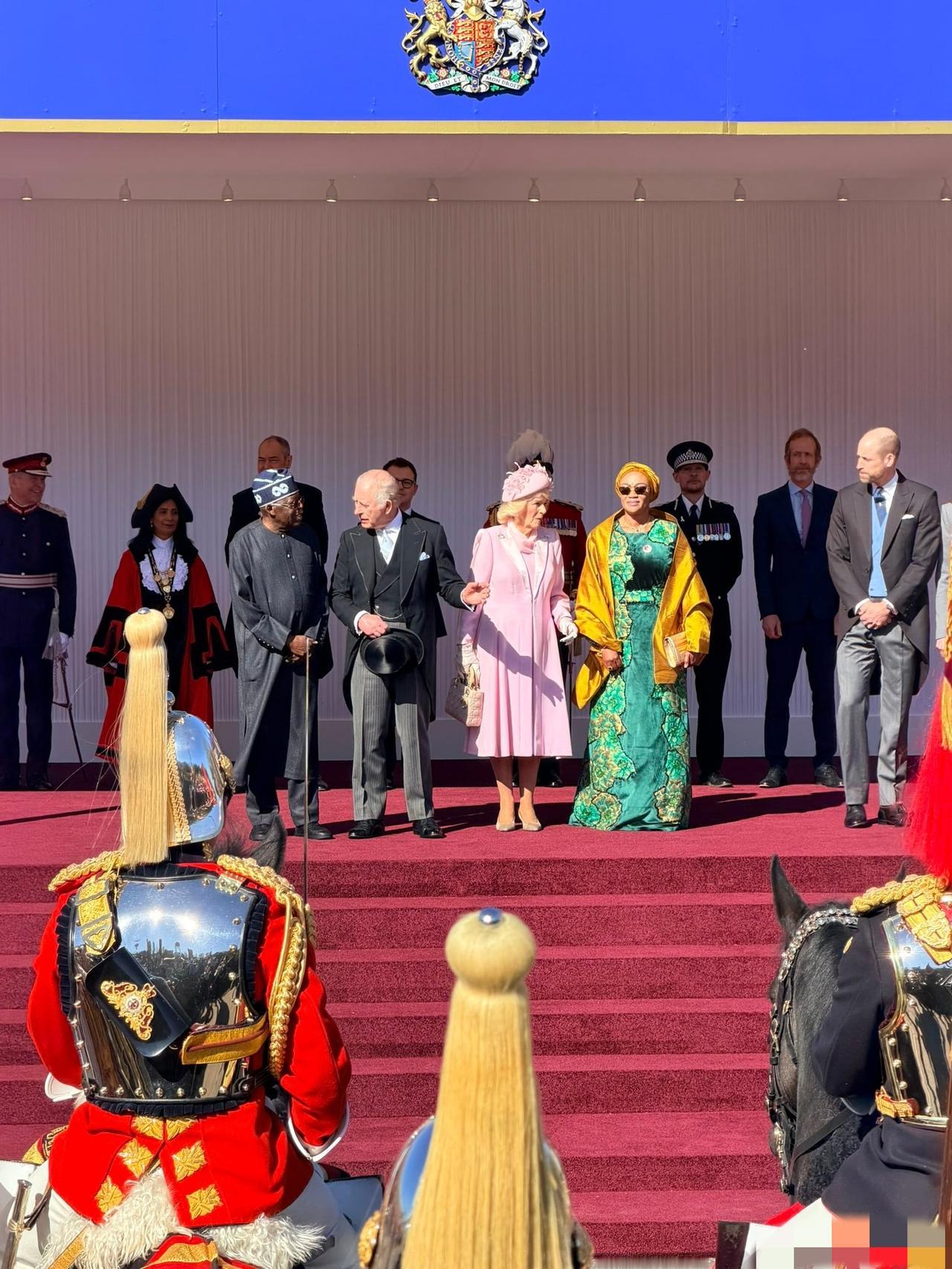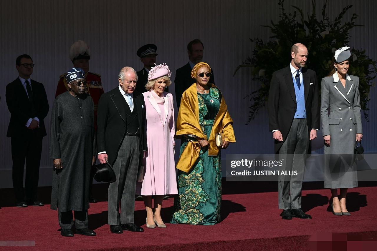 如果说今天的凯特王妃是优雅知性,那婆婆卡米拉王后就是粉嫩少女感了! 3月18日,为欢迎来访的尼日利亚总统夫妇,查尔斯国王和卡米拉王后在温莎城堡举办了隆重的欢迎仪式。 威廉凯特陪着尼日利亚总统夫妇抵达温莎城堡,出席查尔斯国王举办的欢迎仪式! 凯特王妃一袭全新的灰色大衣,优雅知性。 而作为婆婆的卡米拉王后却比儿媳凯特打扮的更嫩,粉粉嫩嫩的少女粉衣裙,在欢迎仪式上真是格外吸睛!