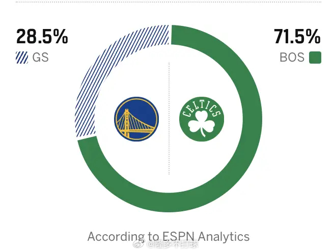 ESPN预测本场比赛,勇士胜率为28.5%,凯尔特人71.5%