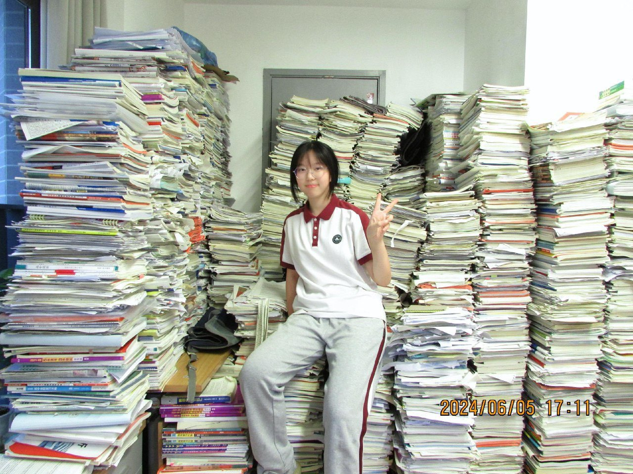看到一张照片,有个考上大学的孩子,展示她在学校所做过的所有习题资料