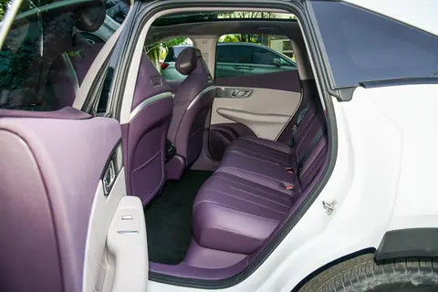 再来看看空间表现,深蓝S07定位是中型SUV,车身结构为5门5座SUV,车身长宽高分别为4750x1930x1625mm,轴距为2900mm,对于这种大五座的SUV来讲,后排的乘坐空间表现是完全不用担心的,小编身高180cm,体重60kg,坐进第二排后,腿部空间还有2拳出头的富余,座椅宽大厚实,采用的是仿皮的材质,加上纯平的地台处理,后排即使在满员状态下也不会觉得拥挤,前排主副驾驶位均支持电动调节功能,并带有座椅加热、通风和记忆功能,副驾驶位配备了零重力座椅和按摩功能,进一步提升了乘坐舒适性。行李舱的日常容积为485L,后排座椅支持按比例放倒功能,最大可扩展1425L,装载能力十分出色。