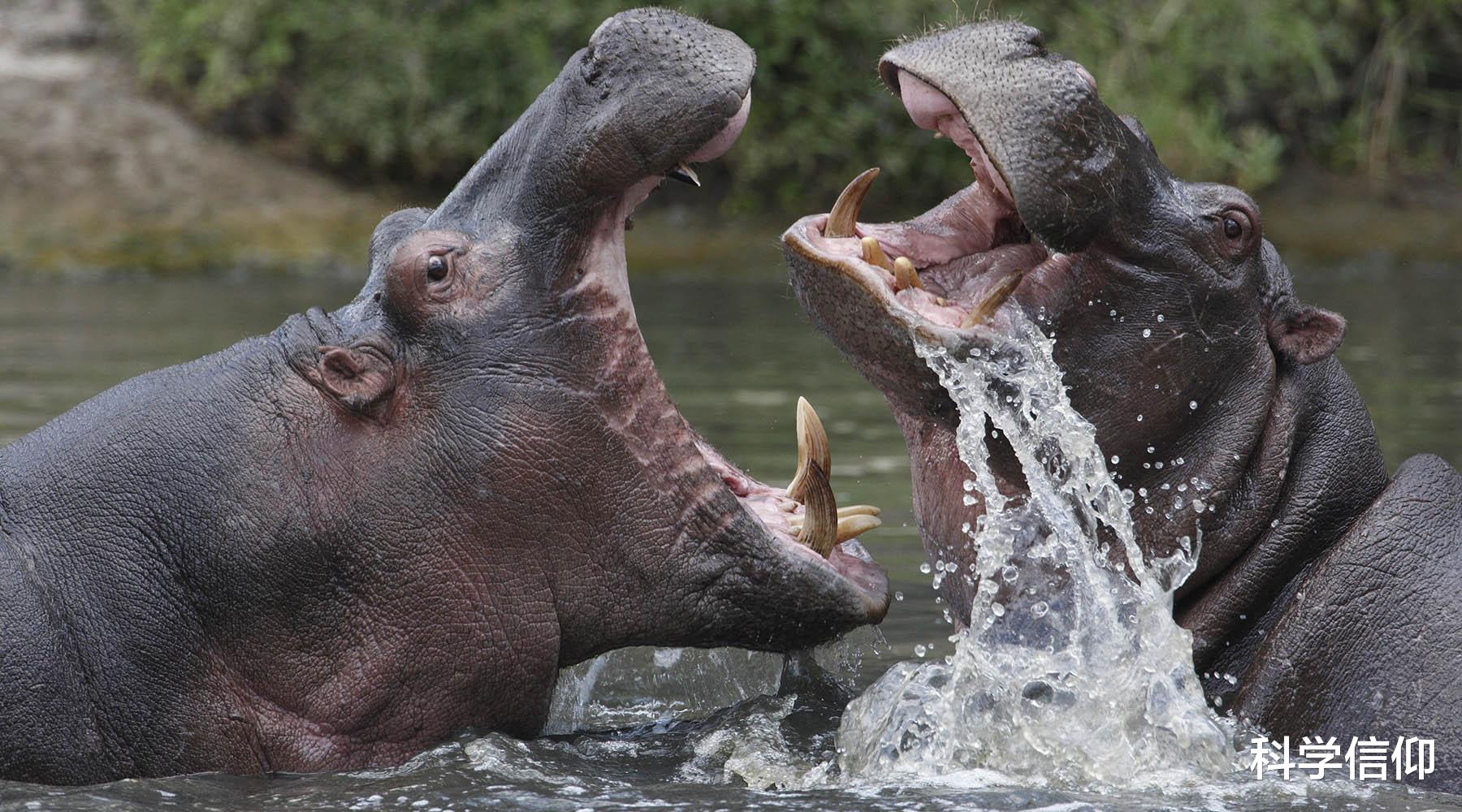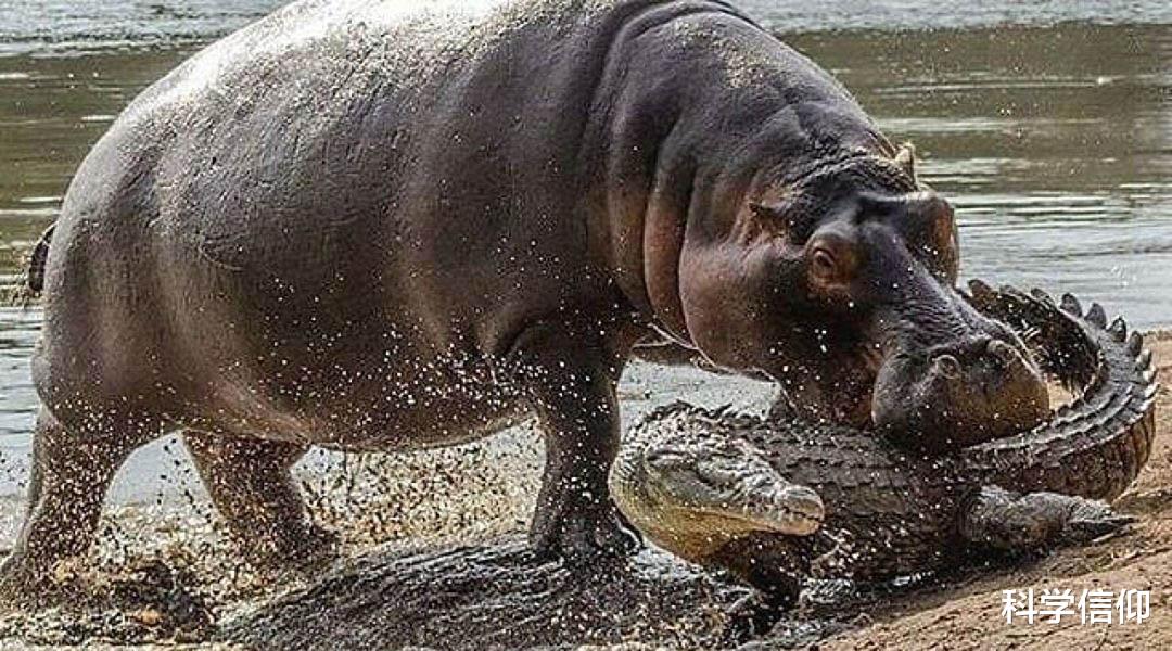 河马是一种非常护崽的动物,一旦幼崽遇到危险,整个河马家族都会上阵,而且不是简单的赶走危险,而是跟对方拼命。坦桑尼亚塞伦盖蒂国家公园就曾经记录到了一起鳄鱼企图袭击小河马的事件,结果母河马赶来将鳄鱼掀翻,直接拍进了泥地里,之后再也没有见到这条鳄鱼浮上来。我们都知道鳄鱼的咬合力惊人,其实河马一点也不逊色,它的嘴能张开150度,一口就能将鳄鱼的骨头咬断,领教过河马厉害的鳄鱼,慢慢地自然就对河马没有任何想法了。