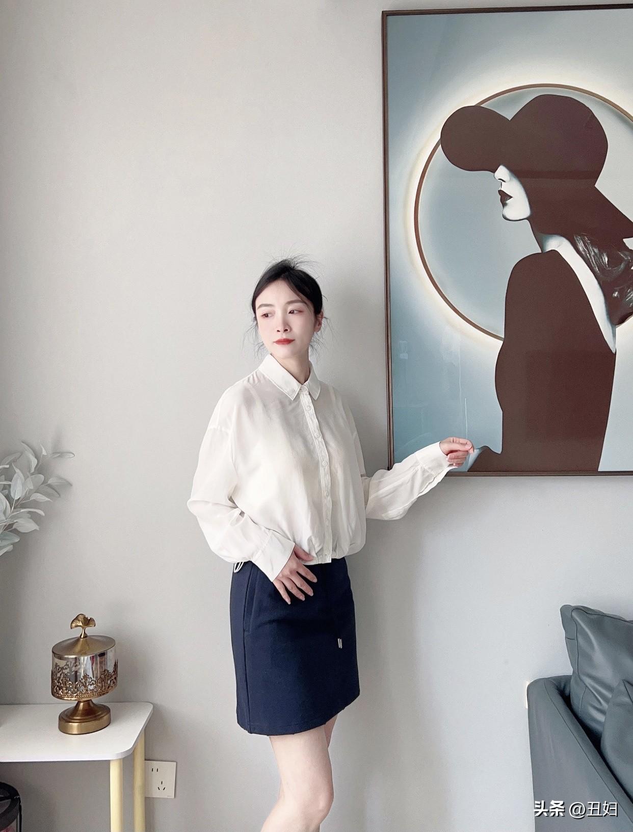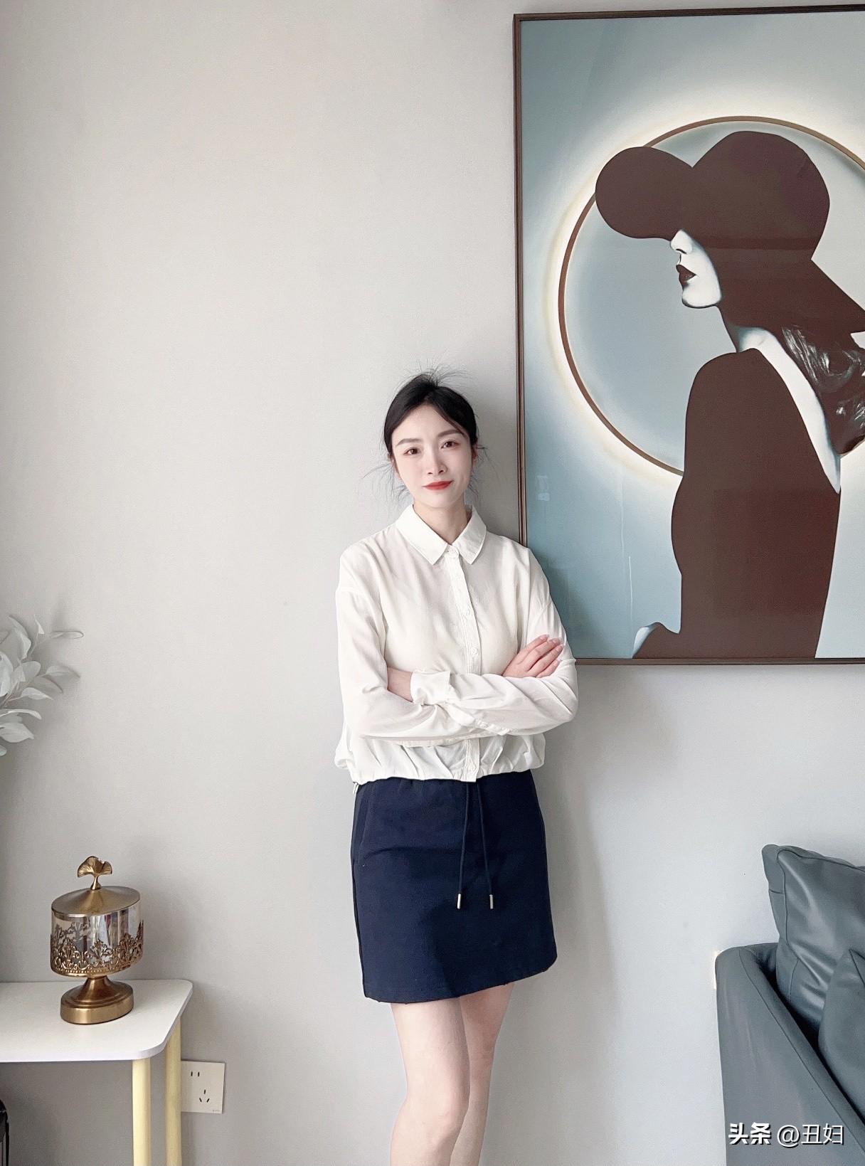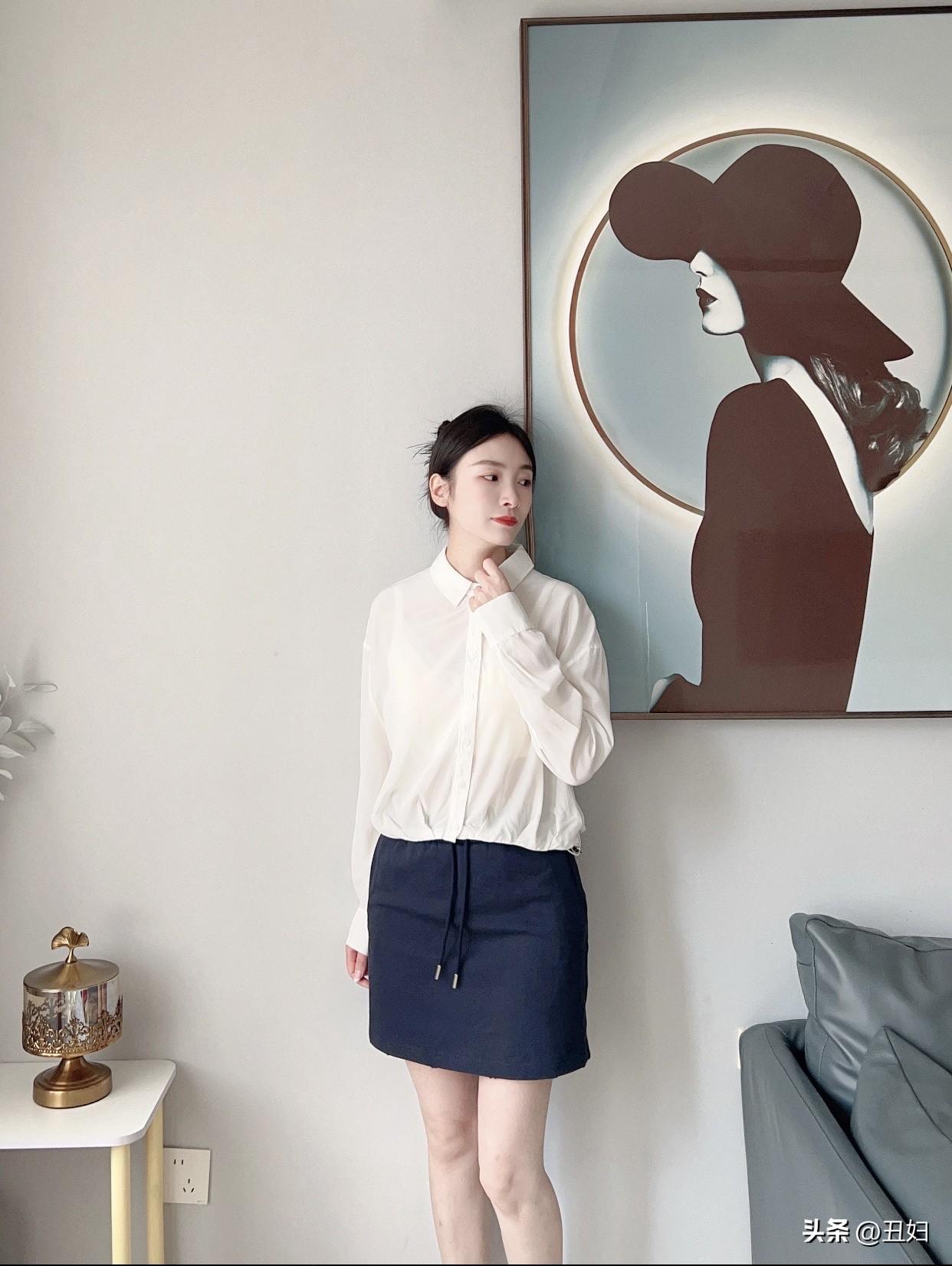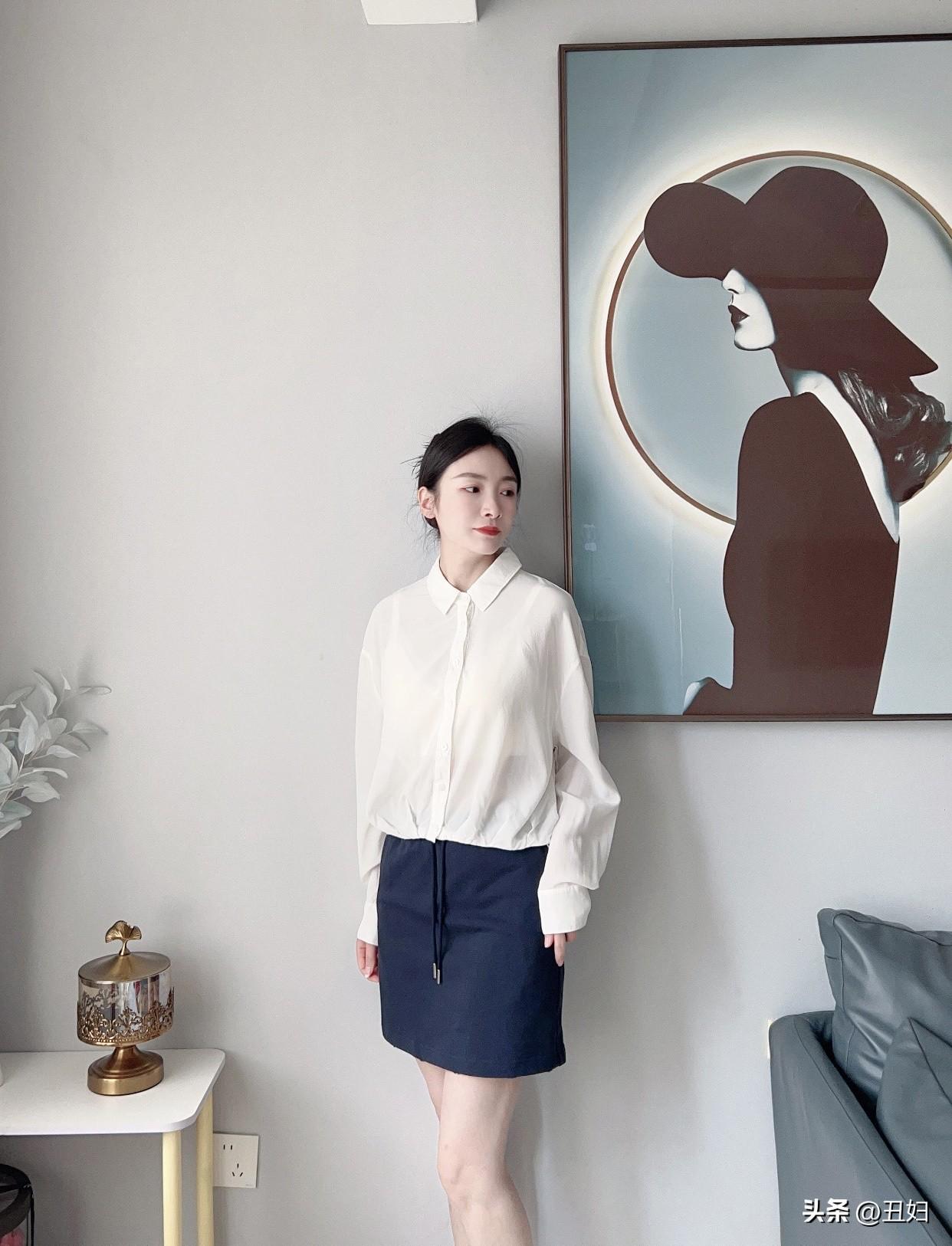 白色衬衫永远不会过时,它百搭又实用。选一件宽松微透的白衬衫,慵懒又隔热,营造出随性氛围。蓝色短裙则自带青春甜美感,让人仿佛回到学生时代。