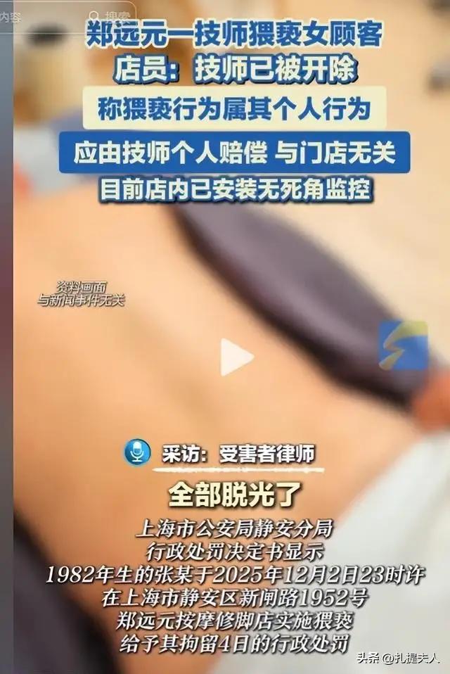 女子遭男技师脱光衣服后续:本人很漂亮 男技师被开除,老板拒赔偿。 看完这段文字,心里特别沉。 这不是什么“行业乱象”的模糊说法,就是一个女性在密闭、弱势的消费场景里,被公然侵犯,然后被店家集体甩锅的真实悲剧。 我帮你把整件事最扎心、也最关键的几点,说得更直白一点: 性质已经钉死:不是误会,是猥亵 警方定性、拘留决定书白纸黑字,不存在“服务过度”“手法问题”,就是故意的性侵犯。 店方想靠一句“个人行为”免责,法律上根本不成立 员工是你招的 工服是你发的 包间是你提供的 服务是你安排的 时间是营业时间 《民法典》写得很清楚:员工在执行工作任务时侵权,用人单位要承担责任。 哪怕员工故意乱来,只要外表是在干活,店家跑不掉。 内部合同写“责任自负”,对外完全无效。 所谓“培训到位”,全是自欺欺人 不给女顾客选择权(不提示可换同性技师) 密闭包间不装监控、不录音 新员工直接单独服务 这叫放任风险,不叫管理。 店家不是不知道会出事,是没把顾客的安全当成本。 最不公平的地方:受害者最累,加害方最轻,店家最稳 施暴者:拘留4天,出来就走 店家:开除员工、嘴硬“无关”,照常营业赚钱 受害者:要打官司、找律师、举证、承受心理阴影,还要跟店家耗 法律上店家七成要赔,但现实是——不告就不赔,一告就拖你。 真正可怕的,是这个“标准流程” 出事→开除员工→口径统一“个人行为”→拒绝道歉→拒绝赔偿→继续开门。 这套流程,已经成了某些连锁门店的危机公关标准答案。 他们算准了:大多数人耗不起、怕丢人、怕麻烦。 刘女士那句颤抖的“你干什么”,还有后面沉默再报警, 真的太让人难受。 她没闹、没炒作,只是在保护自己、维护尊严。 这件事哪怕不火,也值得所有人记住: 去按摩、足疗、洗浴,只要你觉得不舒服、不对劲,立刻叫停、立刻要求换人、立刻开门、立刻报警。 你不需要“配合服务”,你的身体边界,永远第一。 也希望这件事能倒逼更多店: 异性服务必须征得明确同意 包间必须有可视窗或可开启监控 顾客有权随时换同性技师 出了事别再拿“个人行为”当遮羞布 侵犯就是侵犯,失职就是失职,别让受害者独自扛所有代价。
