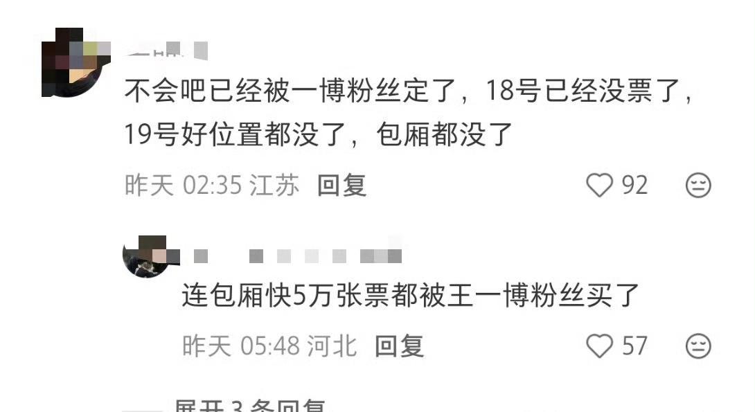“不用纠结了,因为没票了,都被王一博粉丝买光了” “连着包厢快5w张票都被王一博粉丝买了” 王一博这恐怖如斯的影响力号召力[赞] ! 不但票没了,摩托姐姐都跑去安保评论区“求工作”了[笑哭],不要钱的、倒贴钱的,还能安保清洁饭都能做的全能“人才”免费干活儿! 除了王一博,咱就说谁还能带来如此盛况? 王一博