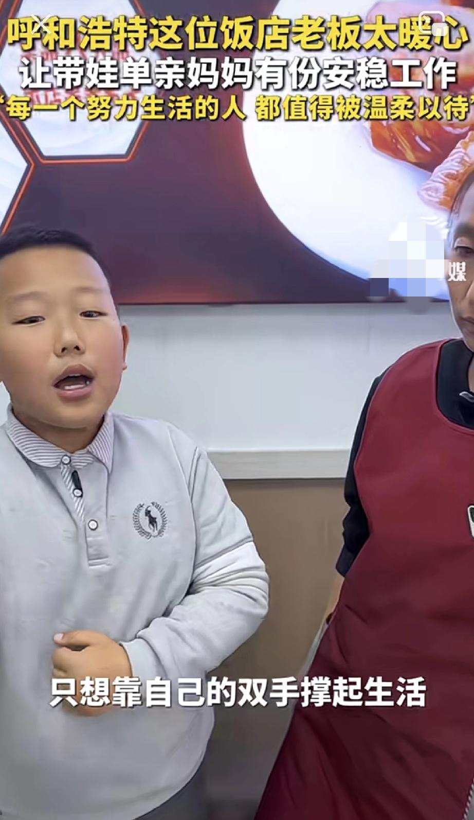 内蒙古赤峰,一女子因丈夫病逝花光家中积蓄,家里四位老人又相继去世,无奈女子只得带娃求职生活,但因为女子希望带着孩子上班,求职屡屡遭拒。可就在女子都不抱希望的走进一家饭馆求职时,这家饭馆老板了解情况,竟爽快答应了女子带娃上班的请求。 没有存款,没有亲人搭把手,还要养活孩子,她只能放下所有委屈和体面,出门找工作谋生。可她面临的难题,是绝大多数用人单位都无法接受的——她必须带着孩子上班。 孩子年纪小,没人看管,既不能独自留在家中,也送不起收费的托管班,这是她找工作唯一的、也是最无奈的条件。 那段日子,她牵着孩子跑遍了周边的商铺、餐馆、小店,只要看到招聘启事,就鼓起勇气上前询问。她一遍遍跟招聘方解释自己的处境,承诺自己能吃苦、干活麻利,不管脏活累活都愿意干,只求能把孩子带在身边。可现实总是冰冷的,没有一家单位愿意松口。 餐饮行业怕孩子哭闹打扰客人、影响营业,商铺担心孩子乱跑造成麻烦,工厂更是直接拒绝带娃上岗,每一次询问,换来的都是委婉的推辞或是干脆的拒绝。 跑了一天又一天,碰了一次又一次壁,她的眼神越来越黯淡,心里的希望也一点点被磨灭。她甚至开始觉得,这个城市根本没有她们母子的容身之处,连一份能糊口的工作都求不来,往后的日子该怎么熬。 就在她彻底不抱希望,只想随便走进一家饭馆碰碰运气、哪怕被拒绝也算是走完最后一趟的时候,她推开了这家饭馆的门。 她站在饭馆门口,攥着孩子的手,声音沙哑地跟老板说明来意,依旧是那句请求:我什么活都能干,能不能让我带着孩子上班。 本以为会和之前一样被拒绝,没想到老板没有立刻赶她走,而是耐心听她讲完了家里的遭遇。没有多余的客套,没有纠结利弊,老板听完后当即点头,爽快地答应了她的请求,告诉她尽管留下来上班,孩子也可以带在身边。 这句应允,对别人来说或许只是一句随口的话,可对这位走投无路的妈妈来说,却是绝境里的一束光,是撑起母子俩生活的救命稻草。她当场红了眼眶,连声道谢,心里积压已久的委屈和无助,在这一刻终于有了宣泄的出口。 入职之后,这位妈妈格外珍惜这份来之不易的工作,眼里有活、手脚勤快,收拾餐桌、擦洗餐具、招呼客人,每一件事都做得尽心尽力,从不偷懒懈怠。 孩子也格外懂事,知道妈妈不容易,也体谅饭馆老板的善意,从不乱跑哭闹,不打扰店里的客人,有时候还会安安静静地帮妈妈递个抹布、收拾杂物,小小的年纪就懂得感恩和体谅。 这件事传开后,很多人都被饭馆老板的善意打动。有人说,老板做的不是什么惊天动地的大事,只是在别人最难的时候搭了一把手;也有人说,比起冷冰冰的规则和利益,这份人情味才最珍贵。 反观现实里,很多用人单位只考虑自身成本和规矩,却忽略了打工人的难处,尤其是单亲妈妈、留守家长这类群体,她们不是不想好好工作,只是被现实困住了脚步,需要的只是一点点包容和体谅。 我们总说生活不易,可陌生人之间的善意,往往能化解最难的困境。这位老板没有图任何回报,只是出于心底的善良,给了一对母子活下去的希望,这位妈妈没有自暴自弃,哪怕屡遭打击也坚持求职谋生,用双手扛起责任。一善念、一份坚守,凑成了最动人的人间温暖。 其实职场和生活从来都不是只有冰冷的规则,多一份包容,就多一条生路,多一份善意,就多一份希望。 我们没办法预知自己会不会遇到难处,但我们可以选择在别人陷入困境时,伸手拉一把。这件小事看似普通,却折射出最朴素的人间真情,也让我们看到,普通人之间的互相成全,才是最治愈的力量。