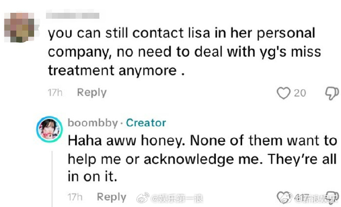 作曲家称遭YG强迫堕胎作曲家称在YG遭霸凌 据韩媒,作曲家Bekuh Boom在社交平台发布多条视频,称她在韩国活动时被合作公司霸凌、遭受言语暴力,甚至被要求堕胎。据悉,她此前多次与YG合作,曾参与制作多首BLACKPINK的歌曲。有粉丝她和Lisa联系,她却表示:“他们所有人都不想帮我,他们都有份。