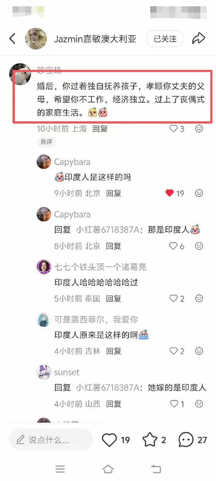 澳洲女生晒中国男友,遭评论恶意预判:婚后你会过丧偶式生活 一位澳大利亚女网友晒自己的中国男朋友,然后下面一个国女阴阳怪气说:婚后,你过着独自抚养孩子,孝顺你丈夫的父母,希望你不工作,经济独立。过上了丧偶式的家庭生活。 这件事在社交平台发酵之后,很快引来大量网友的围观和讨论。原本只是一对跨国情侣的日常分享,却因为这样一条充满偏见和恶意的评论,变成了一场关于婚恋观念、性别认知和国别印象的公共讨论。很多网友顺着账号信息去了解后发现,发表这条评论的网友自己本身就身处跨国婚姻之中。一边享受着跨国婚恋带来的生活,一边却用最刻薄的刻板印象去抹黑中国男性、贬低中国家庭,这种赤裸裸的双标行为,让更多人看清了这番言论的荒谬之处。在网络环境越来越开放的今天,中外年轻人相识相恋、组建家庭早已不是新鲜事,大家乐于分享跨国恋情的甜蜜,本是很正常的事。可总有人抱着老旧的偏见,用自己臆想的场景去评判他人的生活,甚至不惜抹黑一个群体,这样的行为既不理性,也毫无善意。 我们必须清醒地认识到,丧偶式育儿、家庭责任分配不均,从来都不是某个国家、某个群体的专属问题,而是全世界范围内都存在的家庭矛盾。不管是欧美国家,还是亚洲其他地区,都存在着育儿分工失衡、家庭成员责任缺位的情况。这是由社会发展阶段、家庭观念、个人认知等多种因素共同造成的,和国籍没有必然联系。把个别家庭出现的问题,强行捆绑在全体中国男性身上,用一个极端的负面标签定义整个群体,本身就是一种逻辑谬误。这种以偏概全的评判方式,不仅无视了无数中国家庭的真实模样,也在刻意制造不必要的对立,误导不了解真实情况的外国网友,对中国家庭形象造成错误的认知。 当下的中国社会,家庭观念早已发生了翻天覆地的变化,男女平等不再是一句口号,而是深入社会方方面面的现实准则。从法律层面来说,我国的相关法律明确保护夫妻双方的平等权利,强调共同承担家庭责任。从社会现实来看,越来越多的中国男性主动参与到育儿、家务、赡养老人的事务中。下班回家带孩子、周末做家务、和妻子一起照顾双方父母,早已是大多数普通中国家庭的日常。很多年轻夫妻更是秉持着相互扶持的理念,不管是经济支出还是家庭琐事,都共同商量、一起分担。所谓“丧偶式家庭”,从来都不是中国家庭的主流,只是极少数个别案例,绝不能被拿来代表全体。 当代中国女性的独立程度,也早已超出了很多人的刻板认知。现在的女性大多接受过良好的教育,拥有自己的职业和收入,经济独立、人格独立是最基本的追求。在婚恋选择上,女性拥有完全的自主权,选择步入婚姻是因为情感契合,选择在职场打拼是为了实现自我价值。就算暂时回归家庭,也是基于自身意愿的主动选择,而非被迫妥协。没有人可以强迫女性放弃工作、独自承担育儿和赡养老人的重担,社会也在不断完善相关保障,支持女性平衡家庭与事业。用几十年前的老旧观念,来定义如今的中国女性和中国家庭,完全脱离了现实,是对社会进步的无视。 跨国恋情的核心,是两个人之间的真心相爱,从来都不该被国别、刻板印象所绑架。两个来自不同国家的人,因为缘分走到一起,彼此包容、相互理解,这是很美好的事。外人本应给予尊重和祝福,而不是隔着屏幕用恶意去揣测、用偏见去诋毁。这样的负面评论,不仅会伤害到这对跨国情侣,还会在国际社交中传播错误的信息,让不了解中国的外国人对中国家庭、中国男性产生误解,破坏正常的中外民间交流氛围。网络不是法外之地,也不是发泄恶意的场所,发表言论可以有不同观点,但不能失去基本的理性和善意,更不能靠抹黑他人、贬低群体来博取关注。 如今网络上经常出现各种极端言论,有人刻意放大个别矛盾,制造性别对立、国别对立,用偏激的观点煽动情绪。这样的内容看似有话题度,实则毫无价值,还会破坏网络环境。我们看待任何问题,都要立足真实的社会现实,看主流、看整体,而不是抓着极少数的负面案例不放。中国家庭的主流是夫妻同心、相互扶持,中国男性的主流是有责任、有担当,中国女性的主流是独立、自主。这些真实的模样,不是几句阴阳怪气的偏见之语就能抹杀的。理性看待婚恋关系,尊重每个人的选择,摒弃刻板印象,才是我们该有的态度。 各位读者你们怎么看?欢迎在评论区讨论。