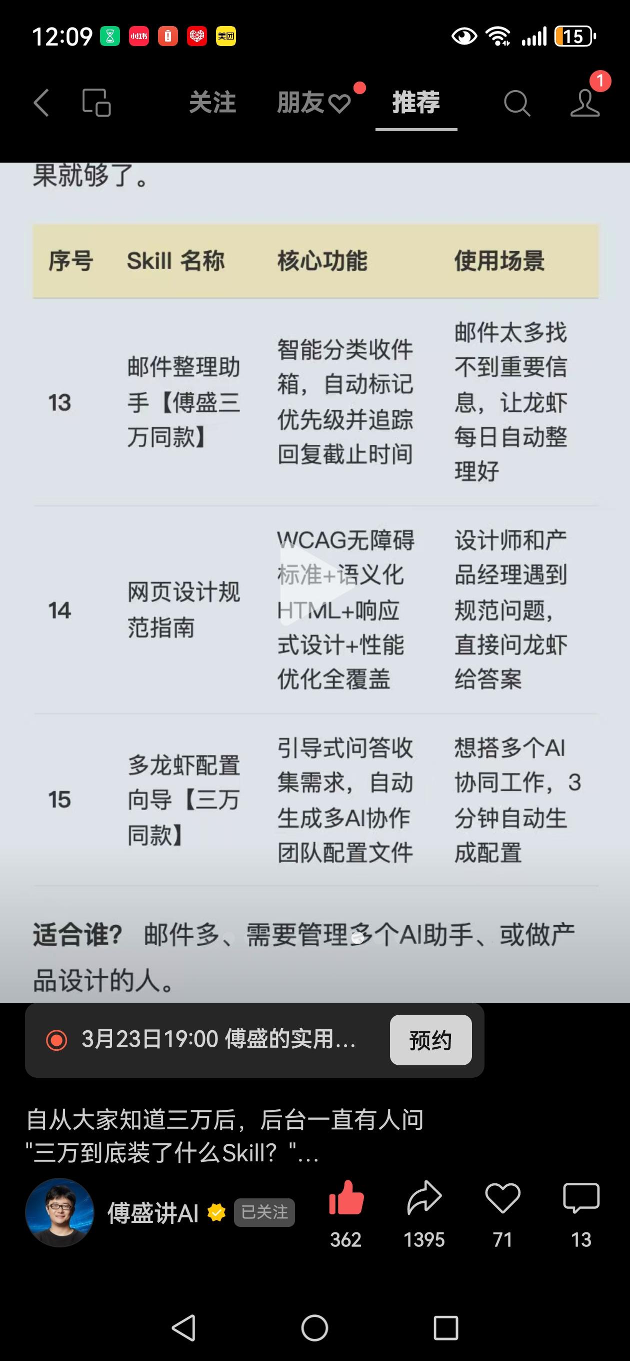 傅盛给自己的EasyClaw三万,设置了15个核心技能,大家需要的去安装下吧! 什么EasyClaw 每天只送170个积分,干不了啥。 太可恶了!那让我告送你怎么把这些技能复制到自己的OpenClaw ,这样就一分钱都不用花了!估计傅总看见想刀我了[大笑]。 安装这些技能,进入EasyClaw的安装目录,里面有个skills 文件夹,里面就是你安装的技能。 打包发给自己的OpenClaw,让它学习安装这些技能,之后你就可以用了,all free ! 不用谢我![大笑]