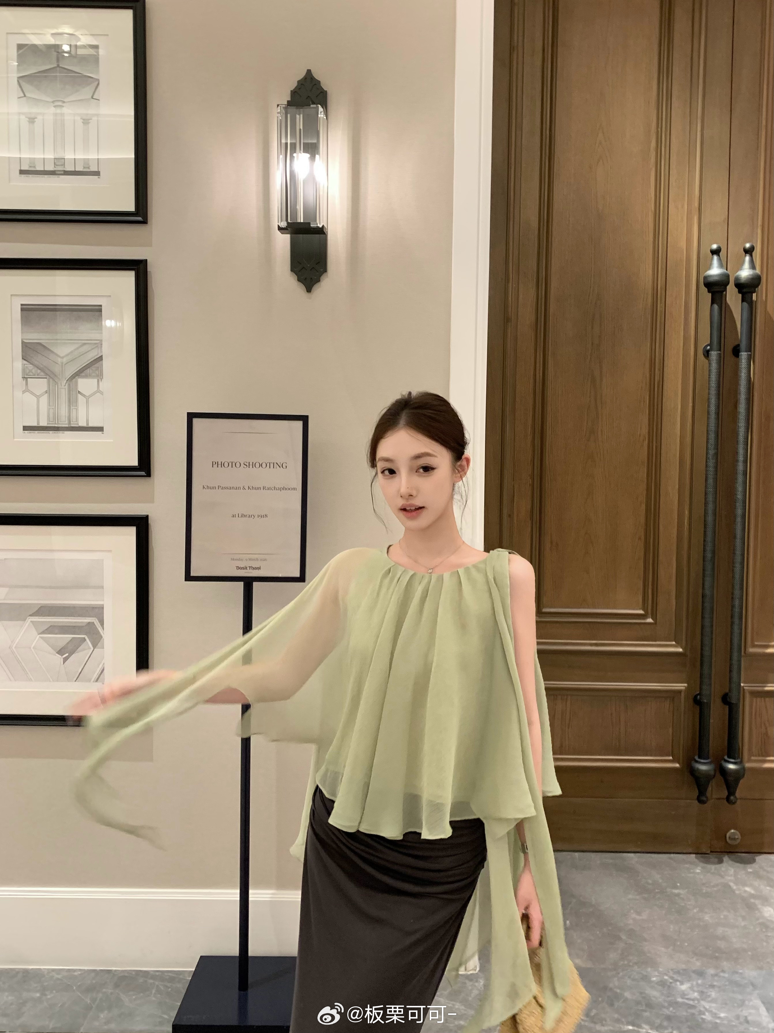 板栗可可Bankelili3/23/20:00👍🏻🍎揪2️⃣100⭕️⭕️仙气飘飘的夏日浪漫~自带朦胧仙气氛围感!上衣不挑身材的斗篷版型 无论是正面、侧面还是背面都很纸片人!!胯部做了抽褶设计 遮小腹修饰胯宽🫶🏻轻松拿捏贵气腔调 美神降临现实版!!我真的会爱很久!!