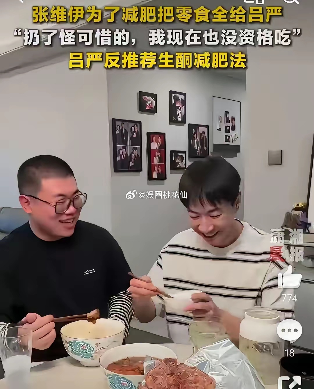 张维伊又出圈了!这次不是靠《庆余年2》,也不是因为老婆是董璇,而是靠减肥——把家里零食全送给吕严了。过年胖了13斤,他二话不说,把泡面、薯片全都打包塞给吕严,自己只喝蔬菜汁,主打一个对自己够狠。这波自律真的有点好笑又佩服,靠“送零食”意外火了一把!