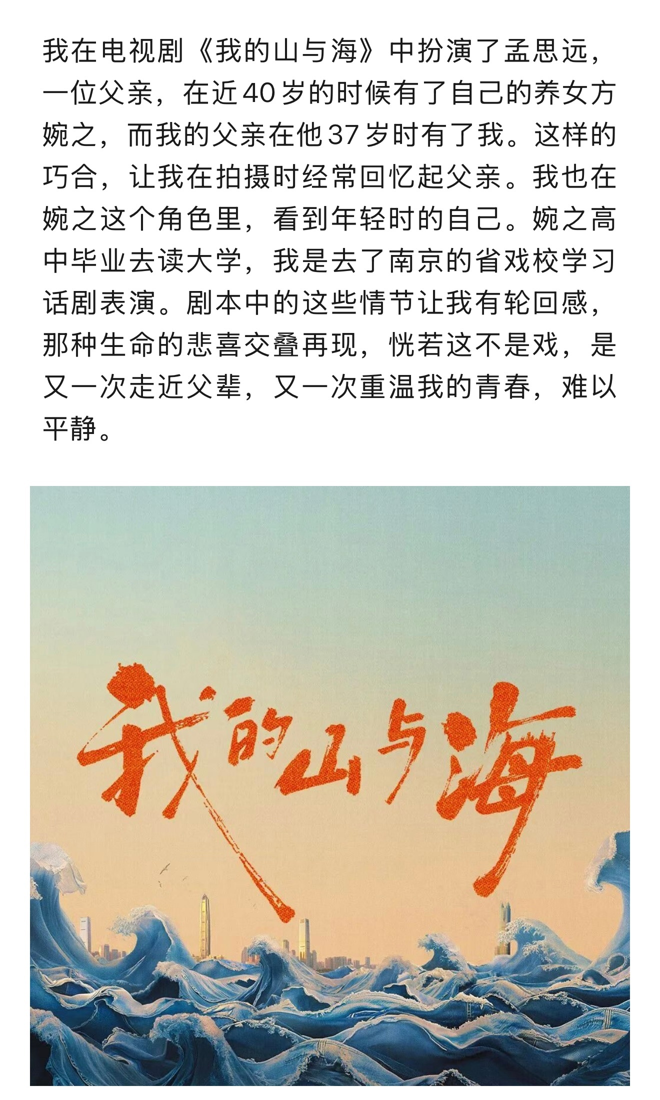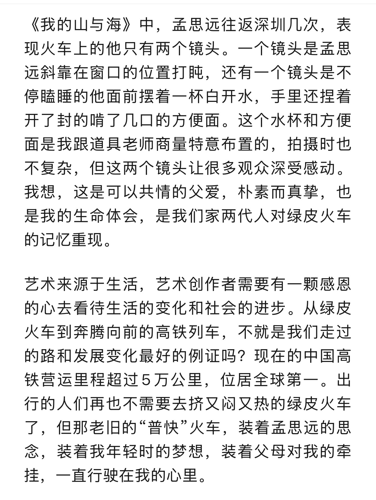 王劲松回忆生命中的绿皮火车王劲松人民日报撰文 看完在人民日报的撰文才更深切懂得,他在《我的山与海》里演绎的从来不止是孟思远一个角色,而是无数沉默如山、默默付出的父辈缩影。生命重叠,时光轮回,绿皮火车颠簸的是千里路途,满载的却是深沉无言的父爱。王劲松用最真诚的文字与表演,诠释了艺术源于生活,而爱,永远是最动人的底色。