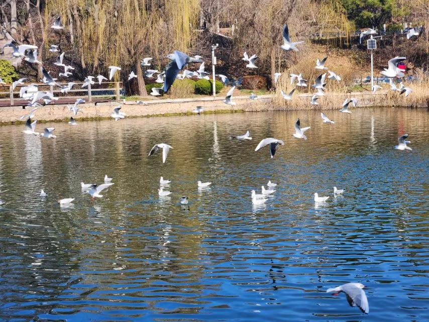 海鸥大部分已飞走,小部分正在练飞翔? 昨天去了中山公园,看到了小西湖上空云集了成群的海鸥,热闹非凡。聚集了许多人在岸边喂海鸥。 可是今天再去看,一只海鸥也没有了,许多想看海鸥的人们还带来吃的,准备给鸥补养一下,看到这情景,还真感到很遗憾。很多人在向保安人员探讨海鸥的下落,保安人员也只是说:“不知道”。 我去了公园的半山腰,发现那里有个人造小水库,约有几百个海鸥,数量很少,像一个海鸥小队伍在练飞翔,准备长途飞往北方。由一大个头的海鸥带队,一会儿飞向天空,一会儿又落在水中,落成一条线,反复多次的训练。 因海鸥喜欢凉爽。到了夏季它就飞往祖国的北方、或西伯利亚、欧洲等地去繁殖。海鸥也真不容易,半路上因饥饿或体力不佳可能就会灭亡他乡。 图1排:小西湖昨天的海鸥群。 图2排:小西湖今日的现状 图3、4:半山腰小水库里像是飞翔训练的少部分海鸥群。 海鸥打卡点 湖畔海鸥 湖岸落日海鸥 湖畔海鸥 海边海鸥拍照 西山海鸥 友友们说是不是呢?快来评论聊聊吧!