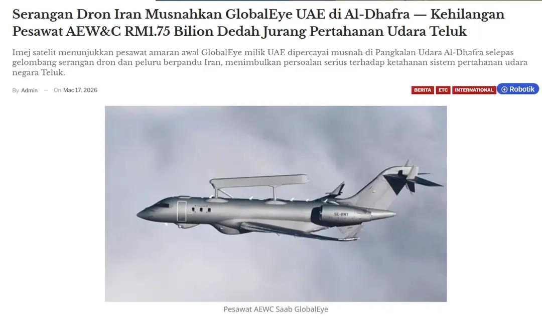 阿联酋空军基地被炸中国造PL一15危险了 据阿布扎比3月18日消息,当天伊朗出动无人机和导弹,对阿尔达夫空军基地进行了袭击,使得机库和跑道受损。一架因故障未来的及撤走的“全球鹰”预警机受损。 这个基地可是存有美军中央司令部F35的基地呀!虽然F35和预警机己经撤了,但中国出口给阿方的L一15高教机可还在呀!要是下次伊朗再次攻击阿联酋空军机场就不好说了!毕竟这可是中东国家新世纪以来进口的首款中国产的飞机呀!真是躺着也中枪了。