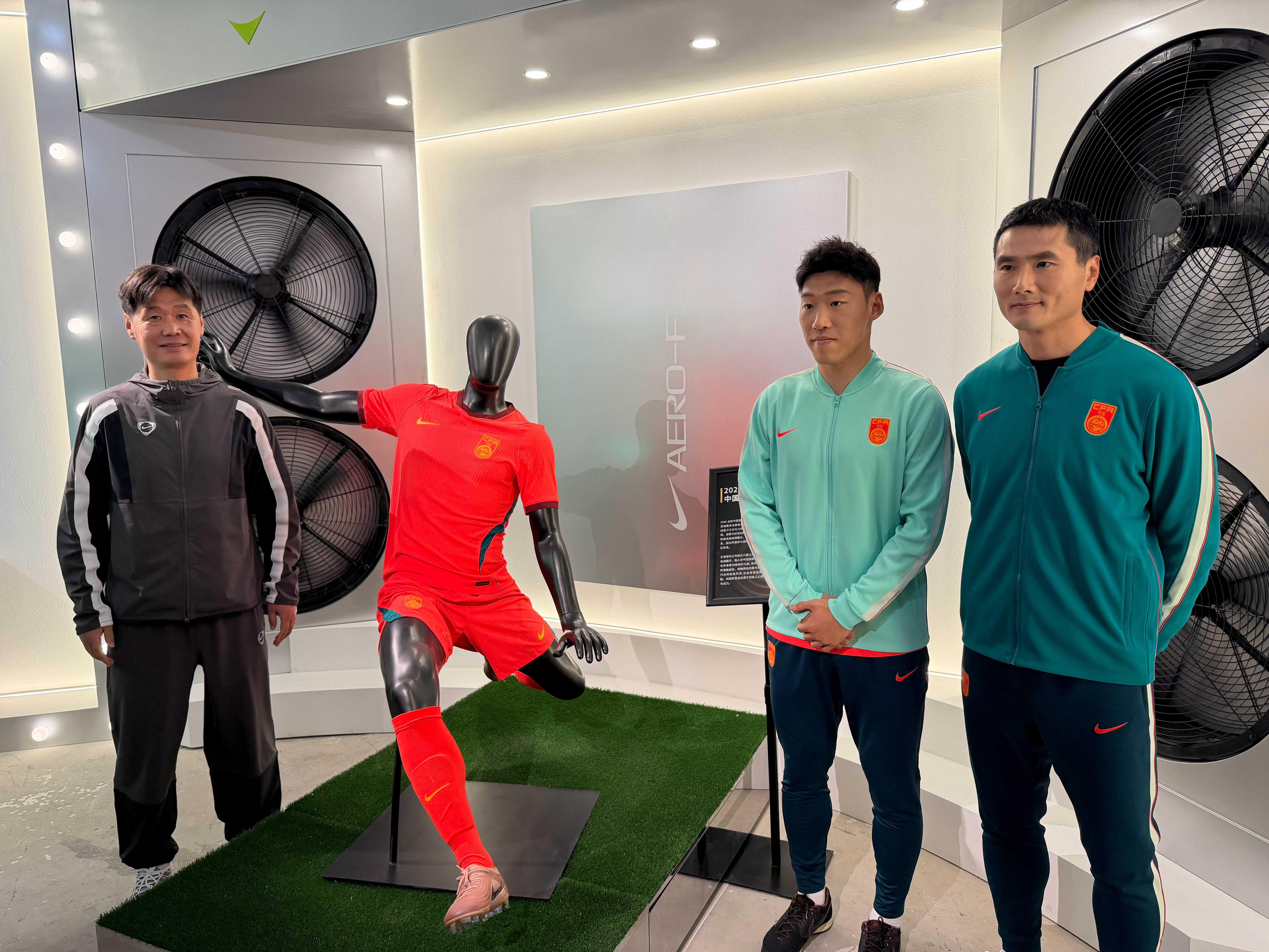 国足主帅邵佳一、球员朱辰杰,前国脚李宵鹏亮相国足新球衣发布会。球衣资讯贤聊球衣国足