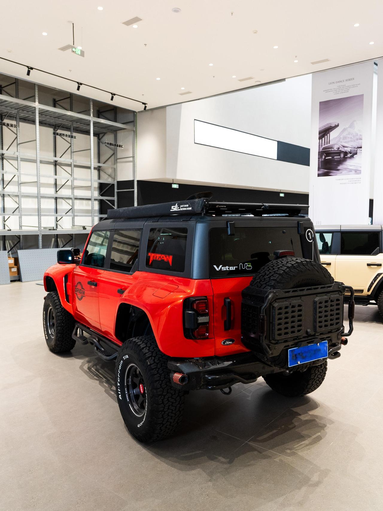 这台橙黑烈马真会改!🧡⚫ 前杠、抬升、大脚胎这套一上,穿越感就来了,远看吸睛,细节也经得起讨论。妙的是不是瞎堆件,而是整车气质很统一,我觉得大灯真的很犀利!😎【来自懂车帝车友圈】