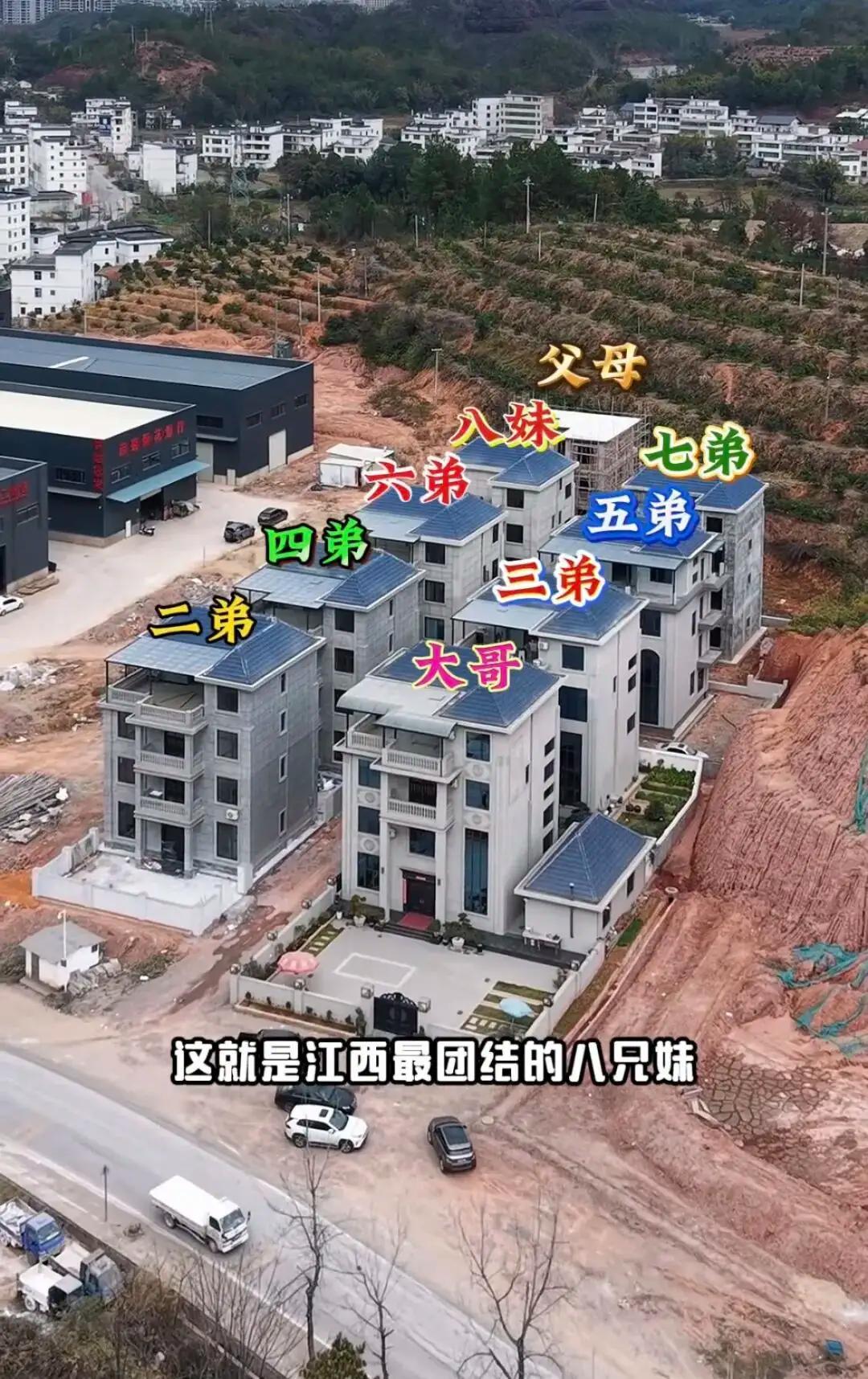 江西团结八兄妹,大哥出钱弟弟出力,为全家建起8栋一模一样的别墅 这就是江西最团结的八兄妹!大哥负责出钱,弟弟们齐心出力,一家人不靠别人、不吵不闹,直接为全家建起了八栋一模一样的别墅。 因为地基有限,八栋房子分两排整齐排列,气派又暖心。前排住着几位兄弟,后排留给父母和小妹,长幼有序、亲情满满。 八兄妹的老家在江西赣南乡村,父母一辈子靠务农拉扯八个孩子长大,家里条件普通,大哥李金生作为长子,十几岁就外出打拼,从工地小工做起,后来扎根建材行业,靠着踏实肯干慢慢积累下家业。他在外打拼的这些年,始终记挂着老家的弟弟妹妹和父母,逢年过节必回村,家里的大小开支他都主动承担,从没有过半句怨言。 三年前老母亲离世,空荡荡的老宅子让大哥心里满是酸楚,他不想一家人因为各自成家渐渐散了,更想让年迈的父亲安享晚年,也想让弟弟妹妹们能守在彼此身边。他当即召集七个弟弟妹妹开会,当场定下建房的想法,所有建房资金由他一人承担,弟弟妹妹凭借各自的手艺出力参与施工,不用额外花钱请工人。 家里的弟弟们大多有建筑、装修相关的手艺,有人懂土建,有人擅长水电,有人精于木工,大家分工明确,全程亲力亲为。从地基开挖到主体施工,从外墙装修到室内布置,每一个环节都由家人亲手把关,用料扎实,做工细致,没有一丝敷衍。建房的几个月里,一家人吃住都在老家,白天一起忙活,晚上围坐在一起吃饭聊天,没有因为分工、用料产生过一次争执。 大哥坚持八栋别墅的户型、面积、装修标准完全一致,他不想因为房子的差异让家人心里产生隔阂,更不想让手足情分被物质对比冲淡。办理产权手续时,他主动联系村委会和土管部门,按照政策明确每栋房屋的权属,八家人逐一签字确认,公共区域的使用规则也写得清清楚楚,他知道把规矩立在前面,才能让亲情长久稳固。 这样的做法在村里引发了不小的震动,不少人觉得一家人没必要把产权分得这么清楚,大哥却始终坚持,亲情不能和财产混为一谈,明明白白的约定,才是对每一个家人的负责。 当下不少家庭因为房产分割、钱财分配闹得反目成仇,手足之间形同陌路,对比这八兄妹的相处模式,更能让人看清亲情的真正意义。他们没有因为贫富差距心生嫌隙,没有因为付出多少斤斤计较,大哥愿意倾尽所有守护家人,弟弟妹妹懂得感恩出力回馈,这份齐心在当下显得格外珍贵。 赣南乡村一直重视宗族和睦、手足同心的传统,这八兄妹用最实在的行动,传承了老一辈传下来的家风。房子只是载体,藏在房子背后的,是不计较的付出、不攀比的真心、不分散的团圆。 为什么同样是手足亲人,有的家庭能同心协力,有的却会因为利益分崩离析?答案从来不在物质多少,而在心里是否装着家人,是否懂得珍惜血脉相连的情分。 各位读者你们怎么看?欢迎在评论区讨论。
