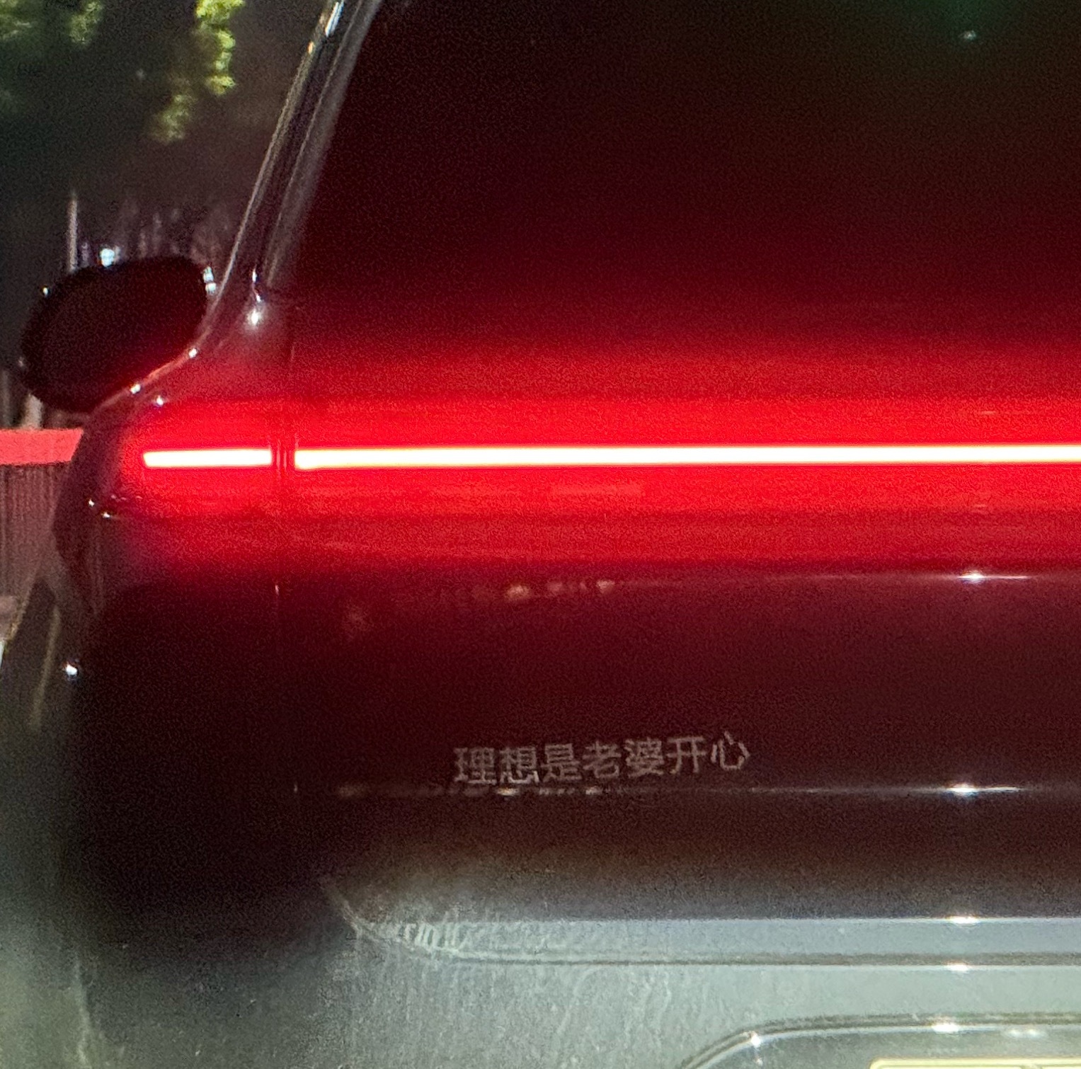 路上偶遇一辆理想“理想是老婆开心”车尾标语有意思😂